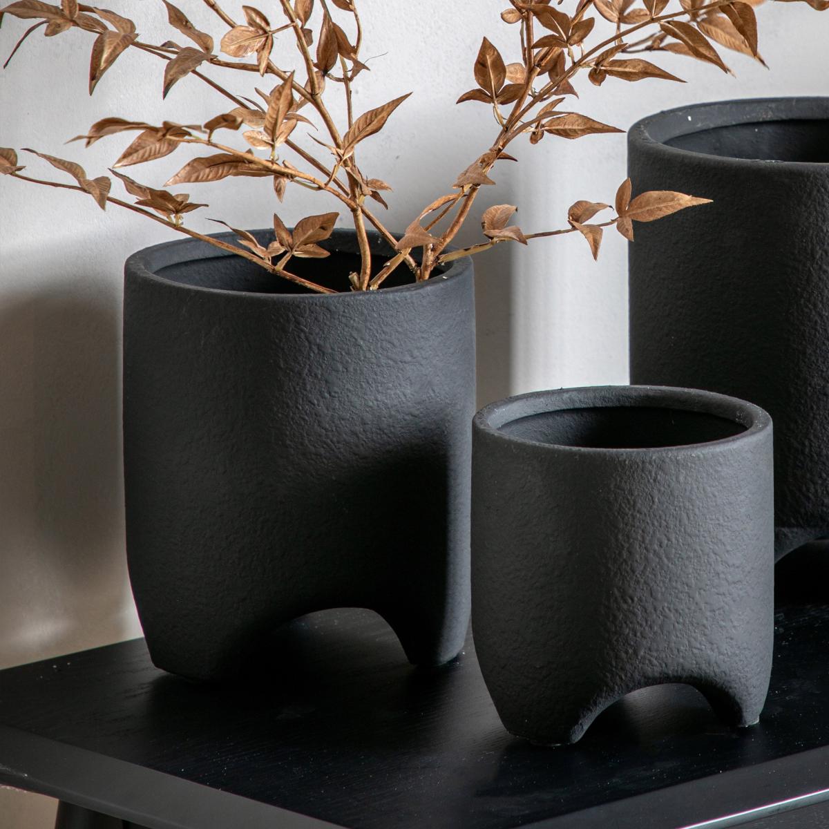I really like this black pot set because of its sleek, contemporary look that works well in modern, minimalist interiors as well as more eclectic spaces. The medium size is versatile, perfect for larger houseplants or small foliage, and the understated black finish adds a sophisticated touch without overwhelming other colours. A styling tip would be to pair it with natural materials like wood or rattan for contrast, or place it alongside metallic accents for a more luxe feel. Its shape is quite sculptural, so it can be a statement piece on its own or integrated into a layered plant display for visual interest.