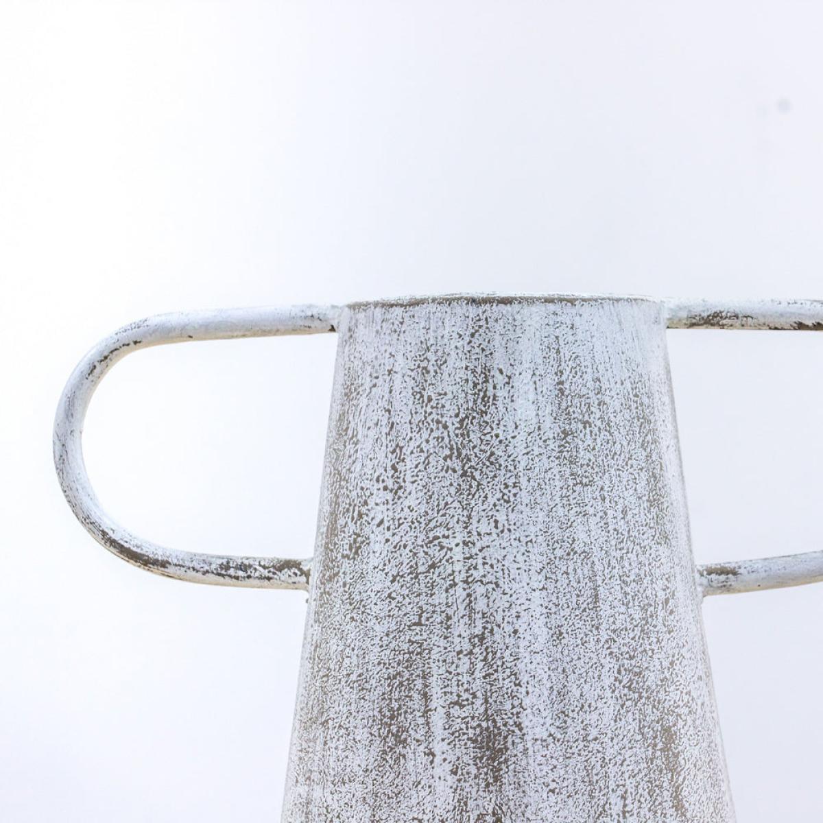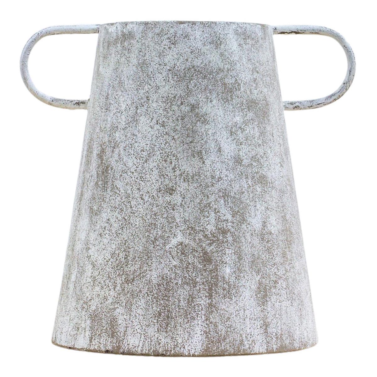 This rustic Charlie vase combines simple styling with a distressed white finish to create a look that is as versatile as it is attractive. The metal vase offers ideal staging for stunning floral di. View More. This rustic Charlie vase combines simple styling with a distressed white finish to create a look that is as versatile as it is attractive. The metal vase offers ideal staging for stunning floral displays but is simply elegant all by itself. Available in two sizes, it would work perfectly as part of a set in a rustic kitchen or standing beside the fireplace in a classically-styled lounge. It transcends style boundaries, so could equally work in contemporary surroundings or complementing industrial ideas. The taller vase measures 46cm in height, 30cm wide, and 22. 5cm deep, while the smaller is 34cm tall, 35cm wide and 28cm deep.