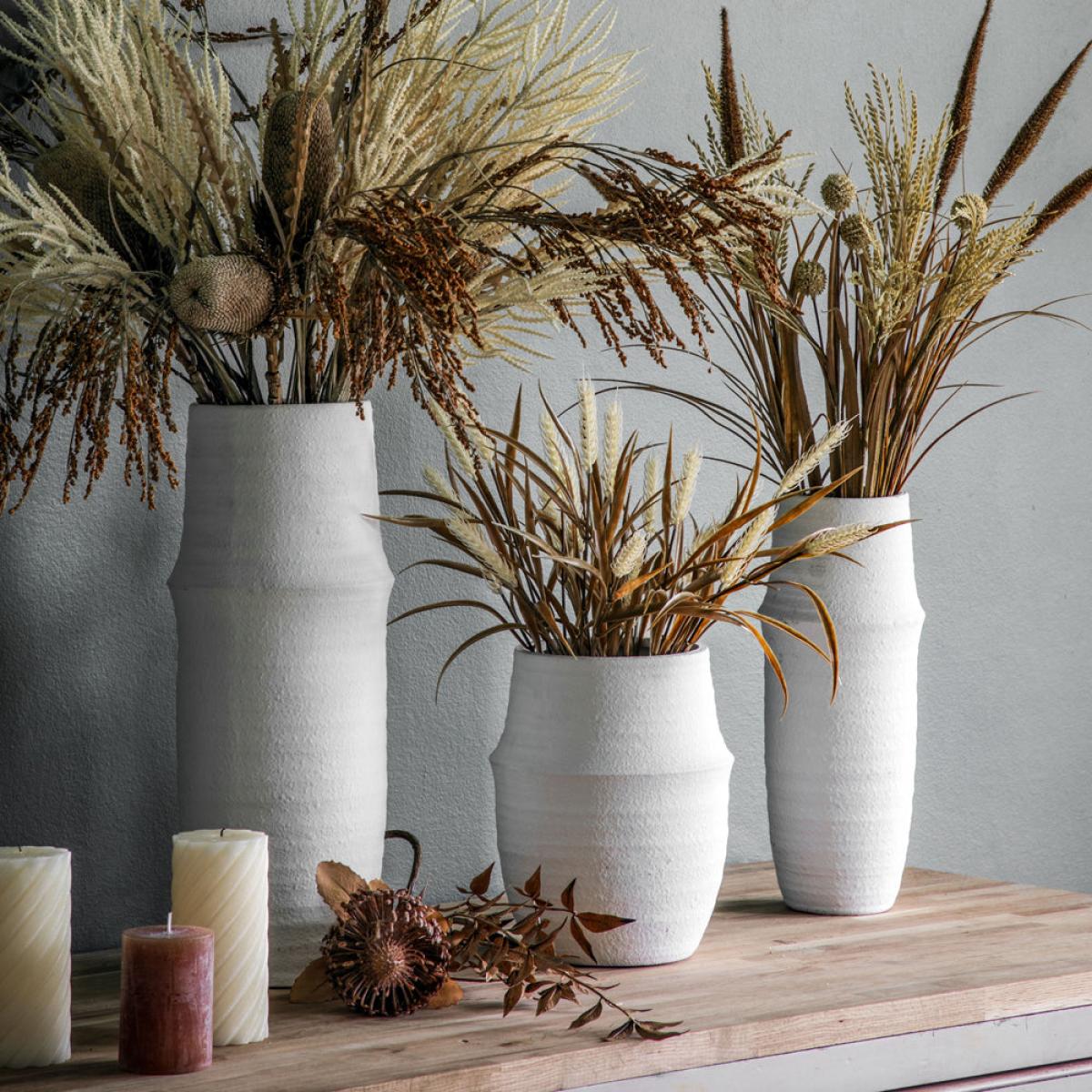 Charming textured vase with a stunning unique shape, in a bright white colour will lighten up any room. Perfect for displaying our floral bundles. Dimensions: W: 18. 5 x D: 18. 5 x H: 45. 5 cm. Material. View More. Charming textured vase with a stunning unique shape, in a bright white colour will lighten up any room. Perfect for displaying our floral bundles.