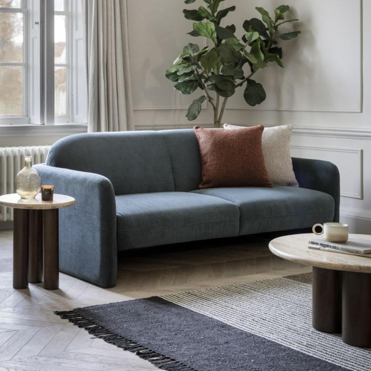I love this sofa for its versatile yet stylish appeal, especially in dusty blue which adds a subtle colour pop without overwhelming the space. It works particularly well in contemporary or Scandinavian interiors, but can easily complement a range of styles from mid-century modern to more eclectic setups. For practical styling, consider pairing it with neutral throw cushions or textured blankets to add cosy layers, while keeping accessories like vases and artwork in complementary tones to let the colour stand out. This piece is perfect for creating a relaxed, inviting living room while still maintaining a polished look.