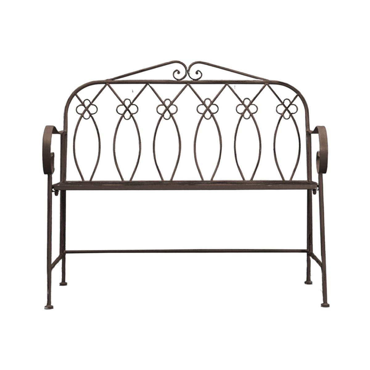 With a chic country style, this bench is perfect for sitting and enjoying the sun. Crafted from metal with a deep metal patina finish, the bench's sweet design details make it a beautiful addition to any garden. For extra comfort, add some cushions from our outdoor cushion selection. It is also available in a soft white finish. Dimensions: H: 57 x W: 105 x D: 94 cm Materials: Iron 100% Assembly Required: Yes Care Instructions:Wipe clean with a damp cloth. Dry with a soft clean cloth Additional Information: We recommend storing outdoor items either under cover or inside during harsh or adverse weather to prolong the life of the product