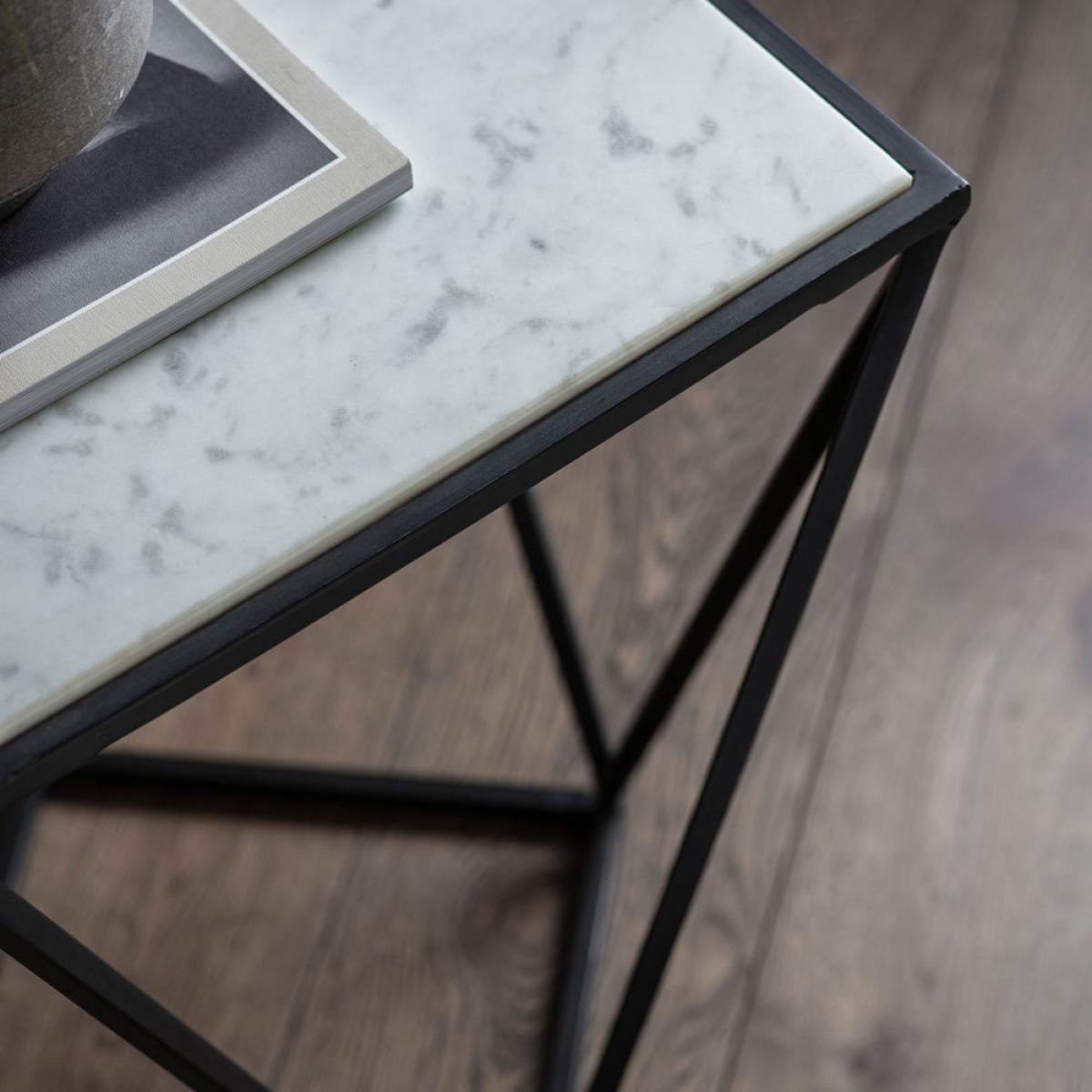 Add a touch of Luxe to a room with this side table which features an eye-catching geometric base in a black finish, paired with a white marble top. The table is also available with a brushed brass finish to the base. *Moot Trading Ltd is not a lender and acts only as an introducer. The credit product is provided by Klarna Bank AB (publ). Credit is only available to permanent UK residents aged 18 and over, subject to status. Terms and conditions apply. Please note that the following products are not regulated by the FCA: Pay in 30 days and Pay in 3 instalments. Read More.