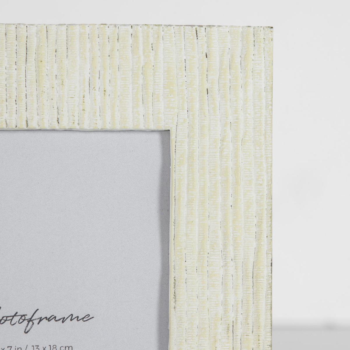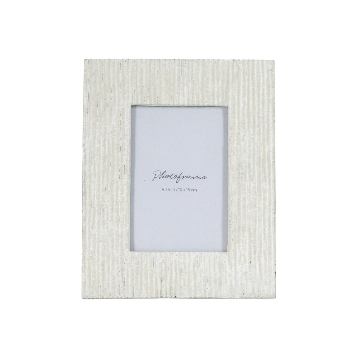 Keep your favourite memories where you can see them every day with the elegant Gallery Interiors Octavia Photo Frame White. This stylish photo frame is the perfect size to display any 4" x 6" snap, allowing you to enjoy special moments all over again. Crafted from durable resin in a chic, neutral matt white hue, this delightful photo frame also boasts a distinctive textured finish, adding visual interest and a touch of fashionable flair to this useful item. Ideal for use in a living room, hallway, kitchen or bedroom, this trendy photo frame can effortlessly complement any interior design theme. Dimensions:Small: H: 23 x W: 18 x D: 1.2 cm. Large: H: 25 x W: 20 x D: 1.2 cm Materials: Polyresin / Glass Assembly Required