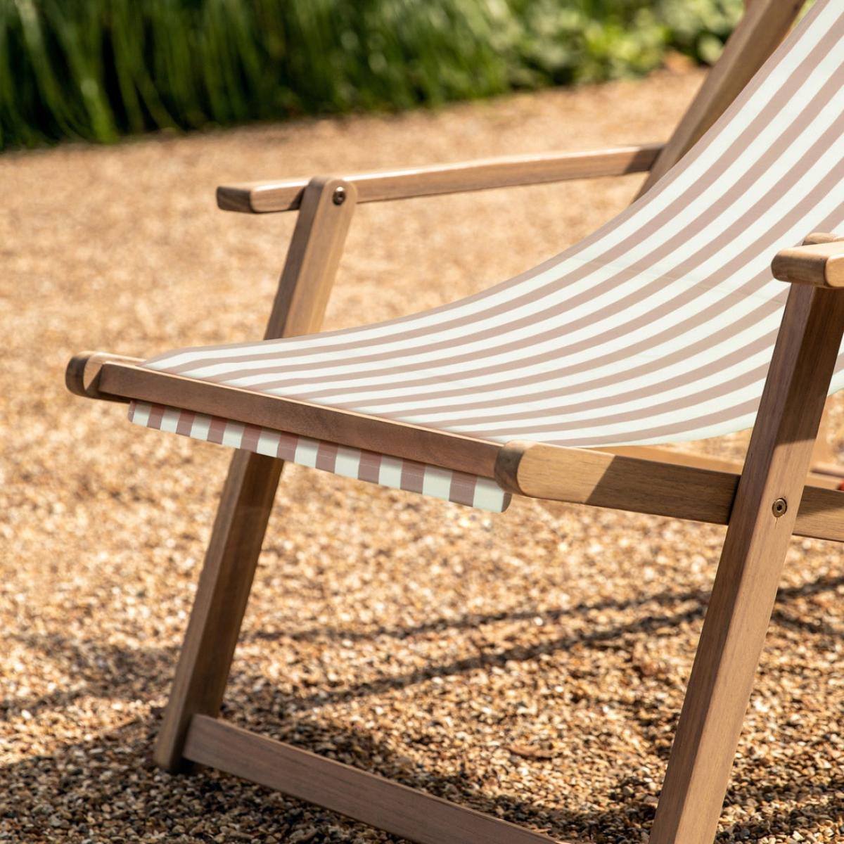 Sit back and make the most of the sunshine in a traditional summer deckchair, uniquely this deckchair also features armrests for that little bit of extra comfort. Dimensions: H:88 x W:102 x D:63cm Materials: Acacia 80% / Polyester Fabric 20% Assembly Required:Yes Care Instructions:Wipe clean with a soft, damp cloth. Keep covered when not in use. Colour fading may occur if left in direct sunlight for long periods of time.
