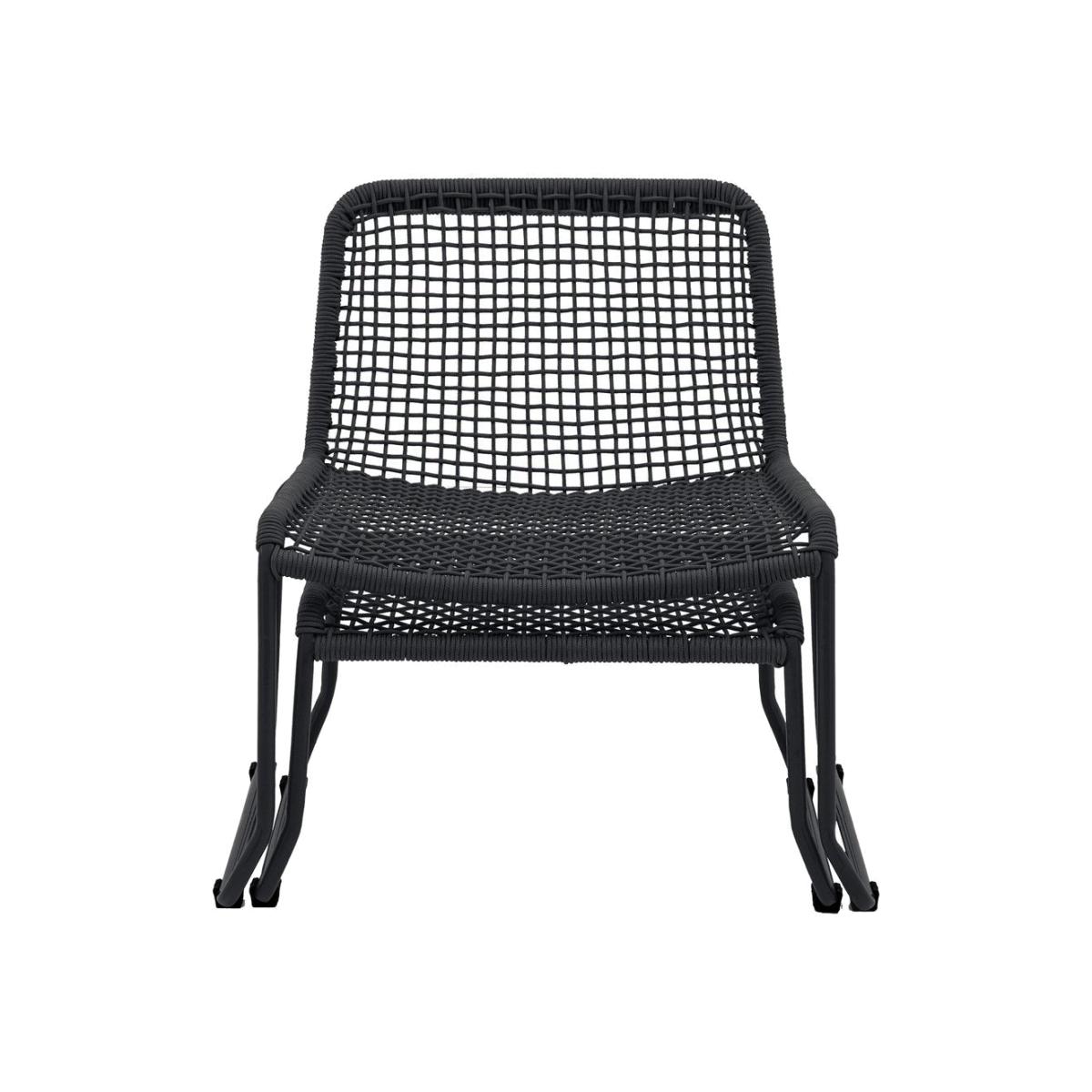 Add a pop of colour and the wow factor to your outdoor space this summer. Sit back and relax in this comfortable bold black lounger chair and footstool, made with a steel frame with woven outdoor rope seat and back for extra comfort. Dimensions: 1x Chair:W:71.5 x D:71 x H:70cm1x Footstool:W:63.5 x D:55.5 x H:34.5cm Materials: Steel 70% / Rope 30% Assembly Required:Yes Care Instructions:Wipe clean with a soft, damp cloth. Keep covered when not in use. Colour fading may occur if left in direct sunlight for long periods of time.