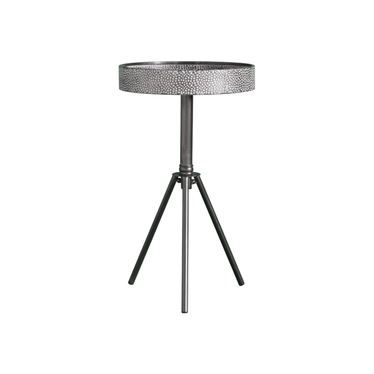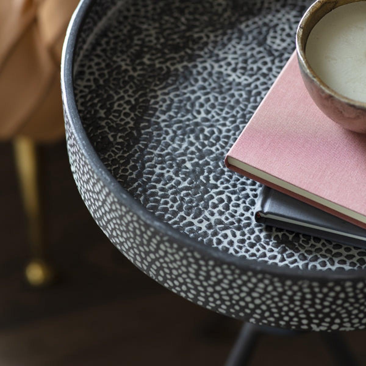 I love this side table for its modern yet understated appeal, making it a versatile piece that can fit seamlessly into various interiors. Its tripod base adds a touch of contemporary style, while the textured surface provides visual interest without overwhelming the space. It works particularly well in industrial, minimalist, or eclectic settings, where its clean lines and functional design can shine. Practical styling tips include placing it next to a cosy armchair with a small lamp or using it as a bedside table paired with neutral or metallic accessories. Keep styling simple to highlight its sleek profile, or add a pop of colour with a decorative throw or plant on top for a personalised touch.