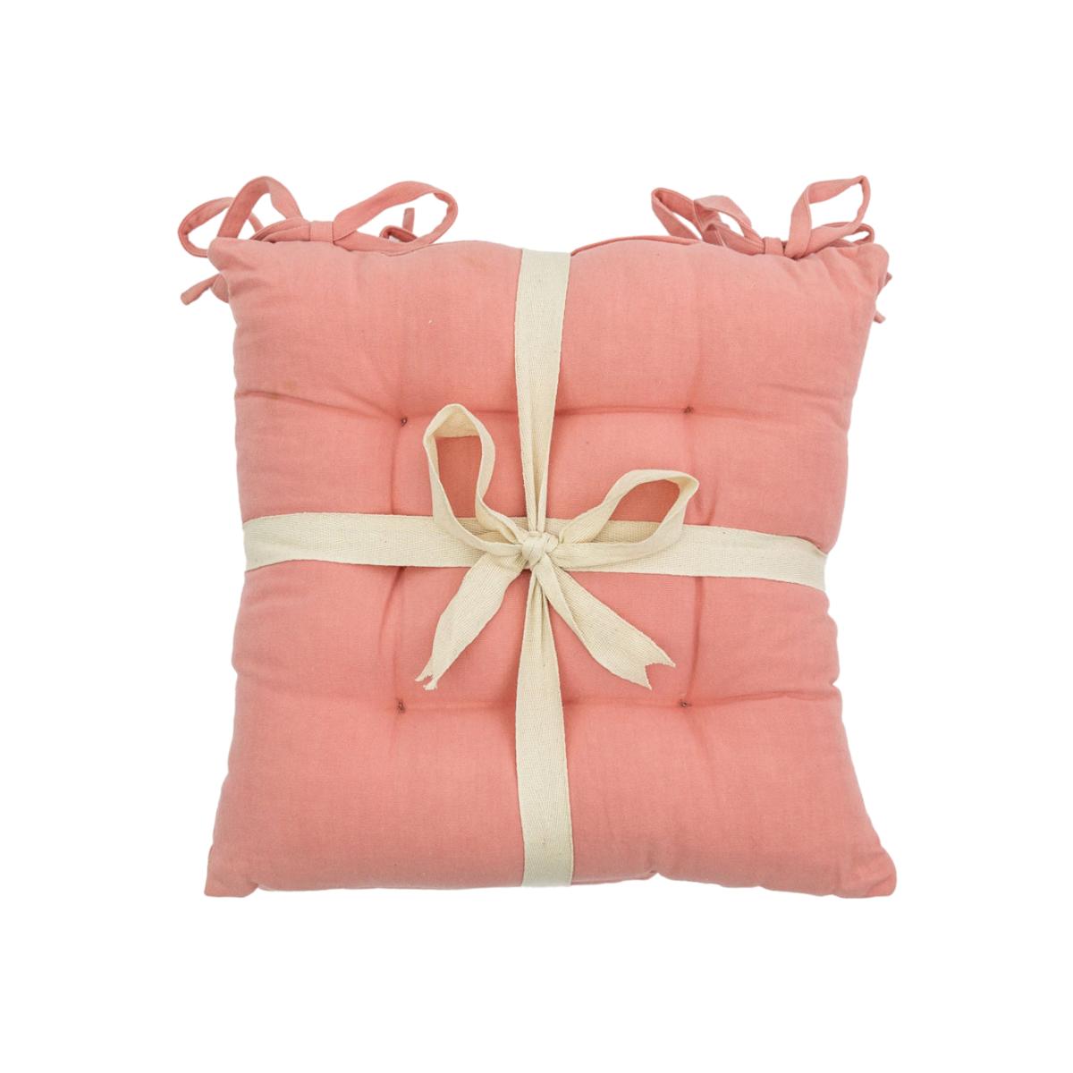 This plush and elegant coral seatpad can transform a multitude of different seating choices. Made from 100 per cent cotton and featuring 9 pintucks and ties to safely secure in place, it offers a versatile choice for anywhere from dining rooms to conservatories and garden rooms. It can even be taken in and out to add comfort and style to outdoor furniture. Every luxurious cushion has been dyed to match its herringbone ribbon, which can be used to ensure neat storage. Each cushion measures 43cm squared and is 5cm in depth. The cushion is available in a range of other colours. Dimensions: H: 5 x W: 43 x D: 43 cm Materials: 100% Cotton Assembly Required:Cleaning Instructions: Spot Clean Only / Do Not Bleach / Do Not Tumble Dry / Do Not Iron / Do Not Dry Clean