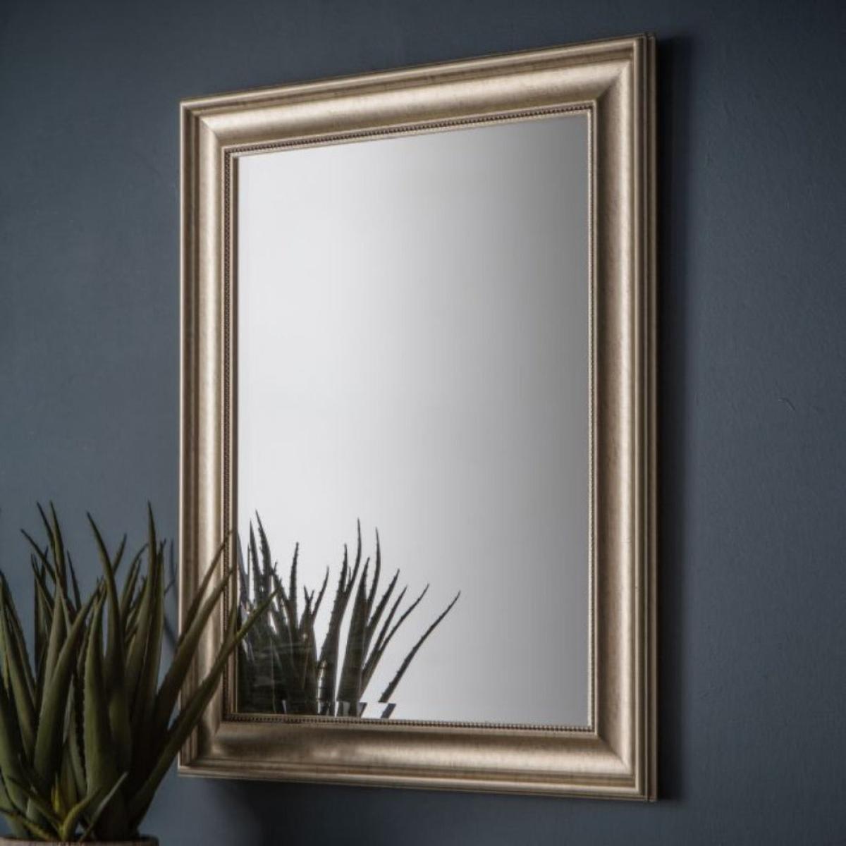 Oozing with elegant simplicity, the Gallery Interiors Presley mirror is a welcome addition to any home. This mirror has a beautiful antique silver frame and is a perfect size for a variety of space. View More. Oozing with elegant simplicity, the Gallery Interiors Presley mirror is a welcome addition to any home. This mirror has a beautiful antique silver frame and is a perfect size for a variety of spaces, measuring 74cm in width and 104cm in height. This great size means that no matter what your limitations in terms of wall space, you will be able to slot the Presley mirror right in. The neutral nature of the shape and the colour scheme of the Presley mirror make it highly adaptable, so you will be able to place it in any room in a wide variety of design styles.