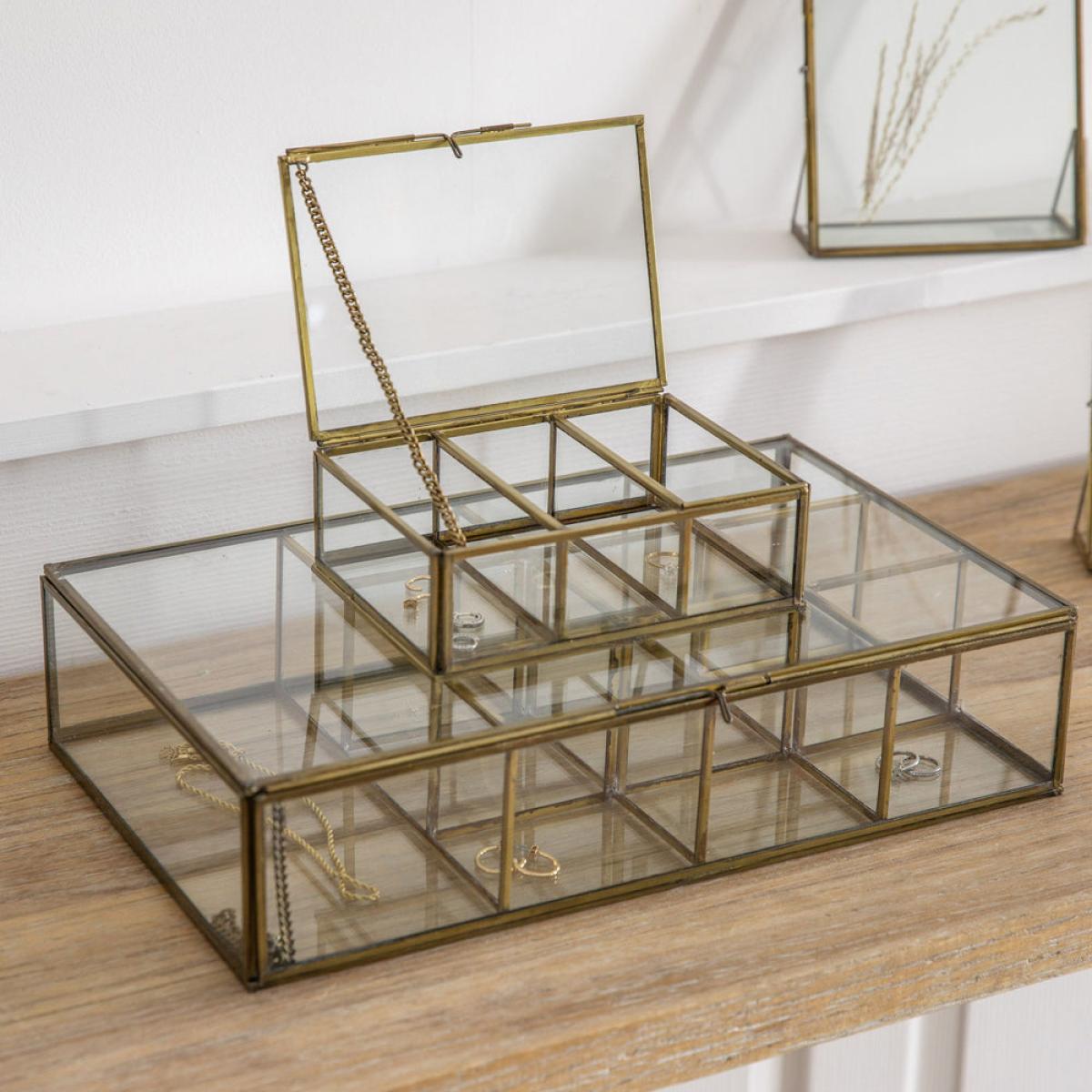This lovely jewellery box offers a simple yet stylish design. It is handmade and features an antique brass finish frame, and ais ideal for use on a dressing table. Dimensions: Small: H: 6 x W: 18. View More. This lovely jewellery box offers a simple yet stylish design. It is handmade and features an antique brass finish frame, and ais ideal for use on a dressing table.