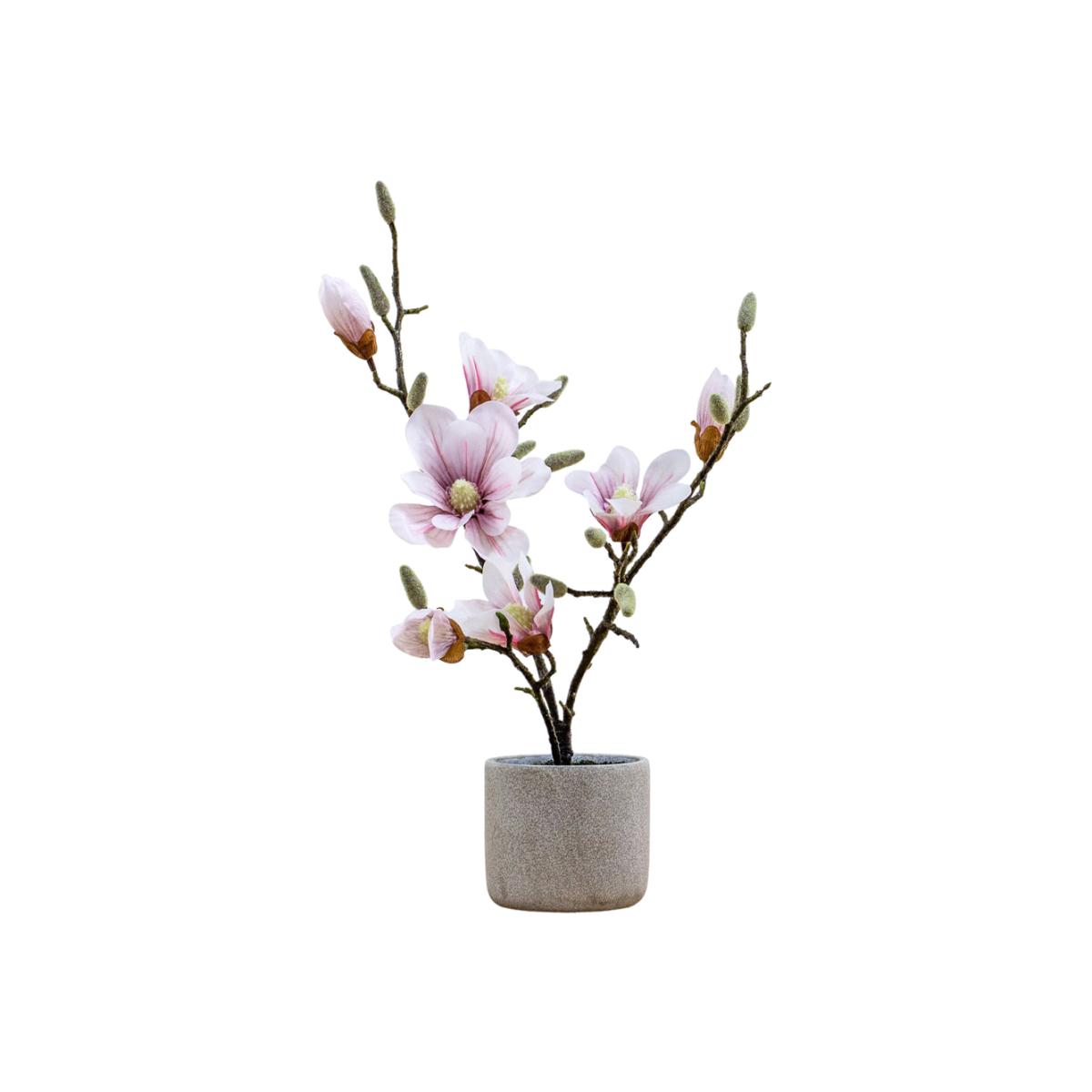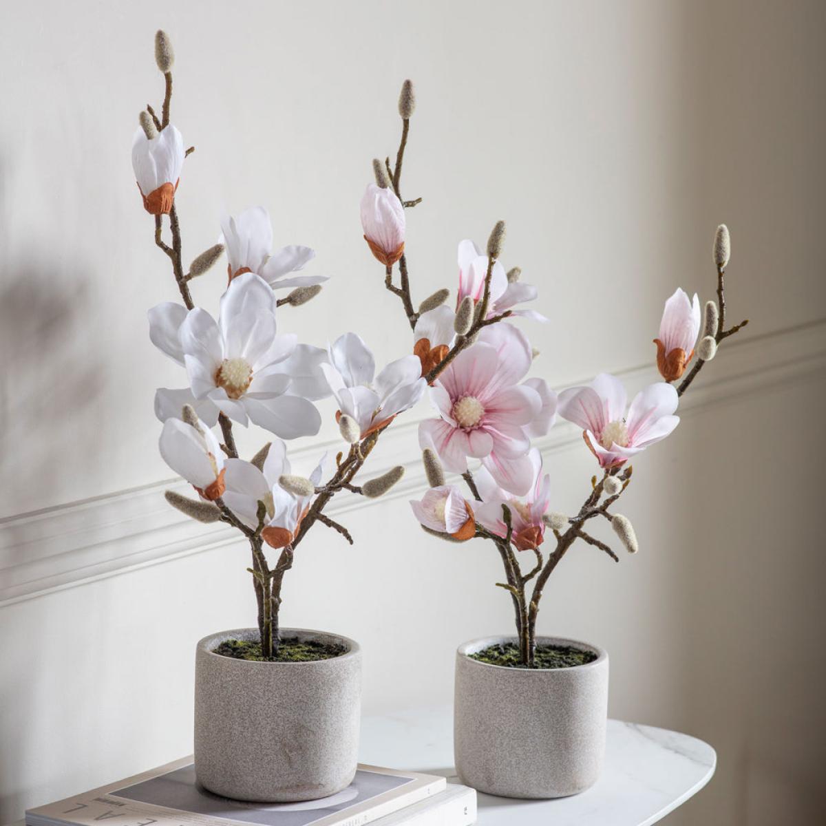 Why worry about looking after a real-life plant when you can enjoy the stunning natural beauty of a potted magnolia with no need for watering or sunlight? This chic and stunning light-pink-bloomed plant is handmade and offers a real-touch finish. It is handcrafted to ensure high levels of detailing and comes complete with its complementary ceramic pot. Each 60cm, 36cm wide, and 26cm deep plant offers a subtle pop of colour that could enhance modern and traditional interiors alike. This stunning plant would be just as attractive on a bedroom windowsill as it would on a coffee or dining table. Dimensions: H: 60 x W: 36 x D: 26 cm Materials: PEVA Cement PE / Iron Assembly Required