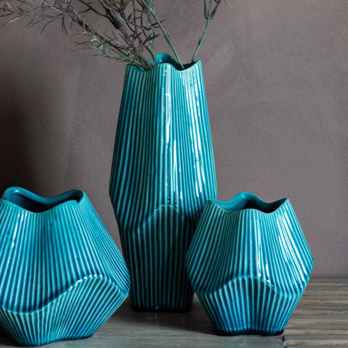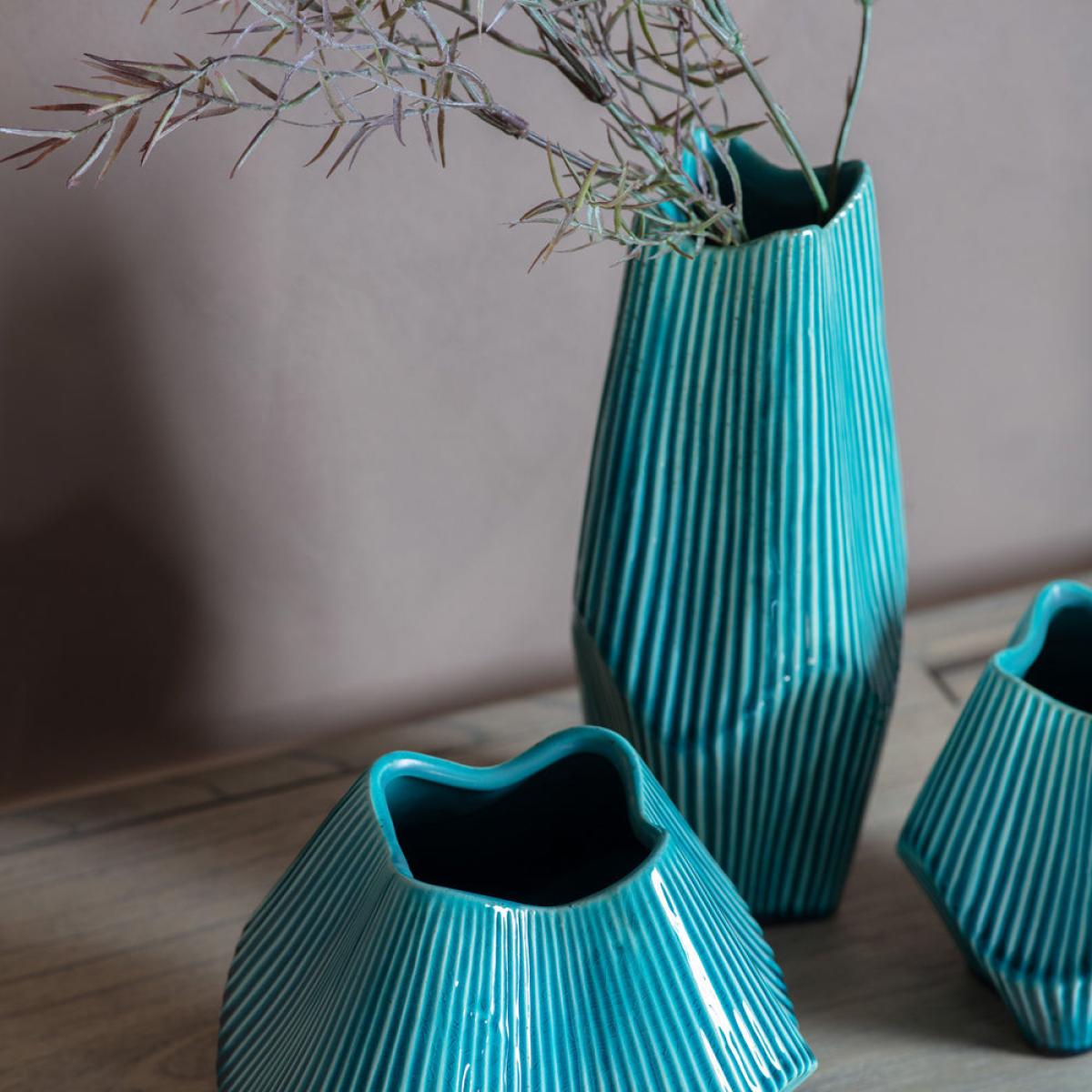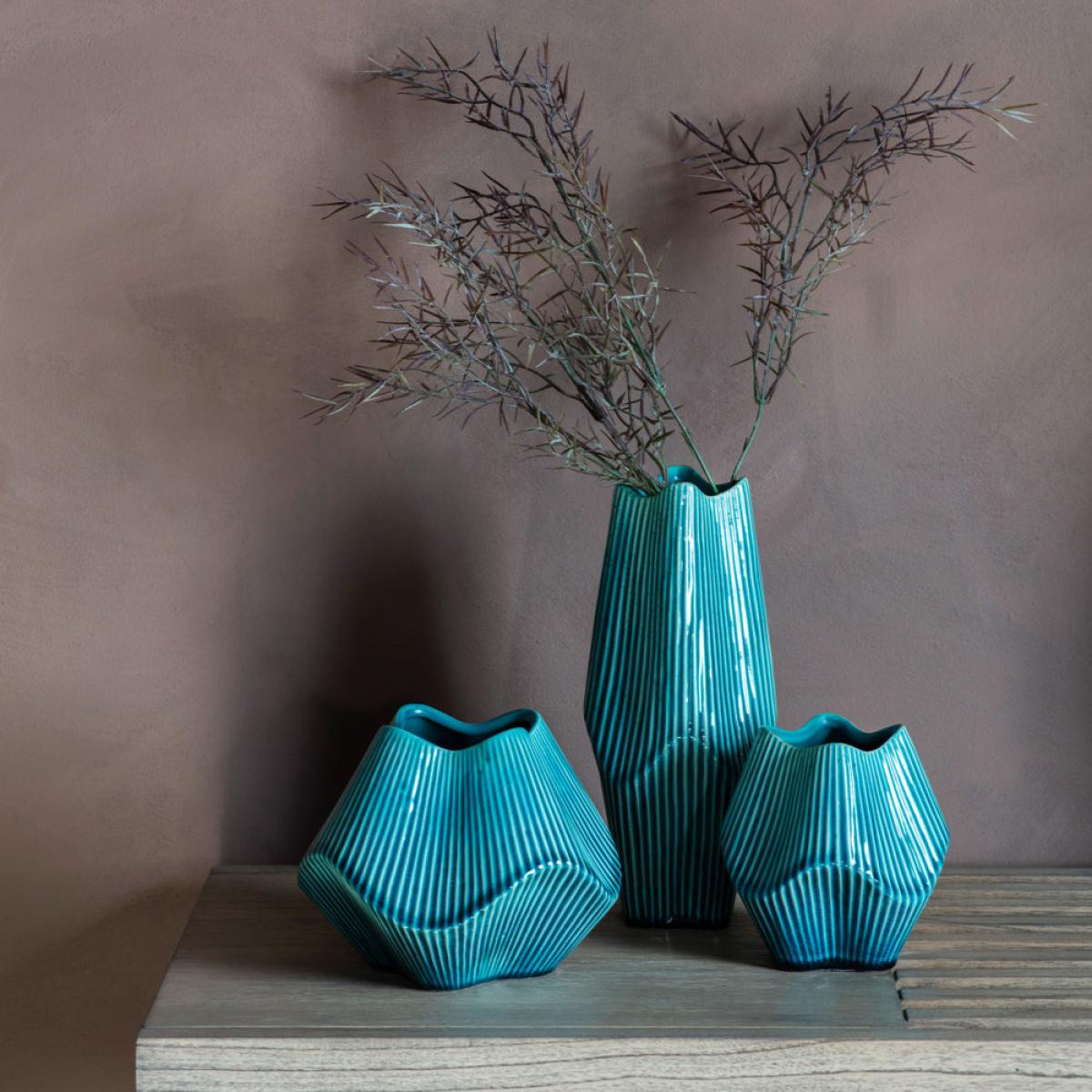 Bring your home to life with this visually stunning and uniquely designed Raverio Ocean Vase. The varying contours and surface of the vase create a striking style that imposes itself in any viewer’. View More. Bring your home to life with this visually stunning and uniquely designed Raverio Ocean Vase. The varying contours and surface of the vase create a striking style that imposes itself in any viewer’s mind. The vivid and dreamlike green and black stripes give it an iridescent vibe that will quickly catch the attention of anyone looking. This vase comes in a variety of sizes, enabling you to place it anywhere in the home comfortably and ensuring that it adds to the style and ambience of that space. Indulge yourself with a vase that brings charm and vibrancy to your home.