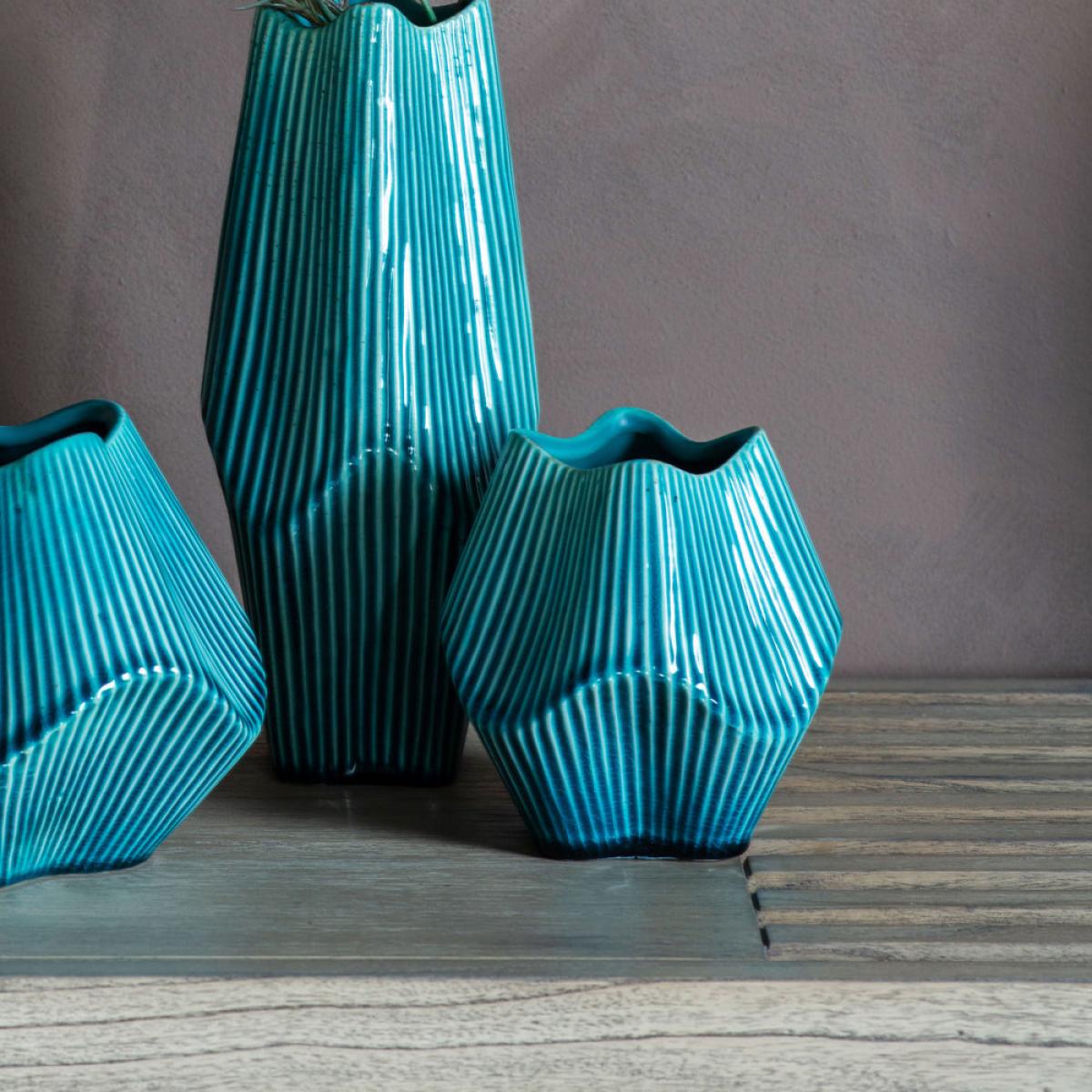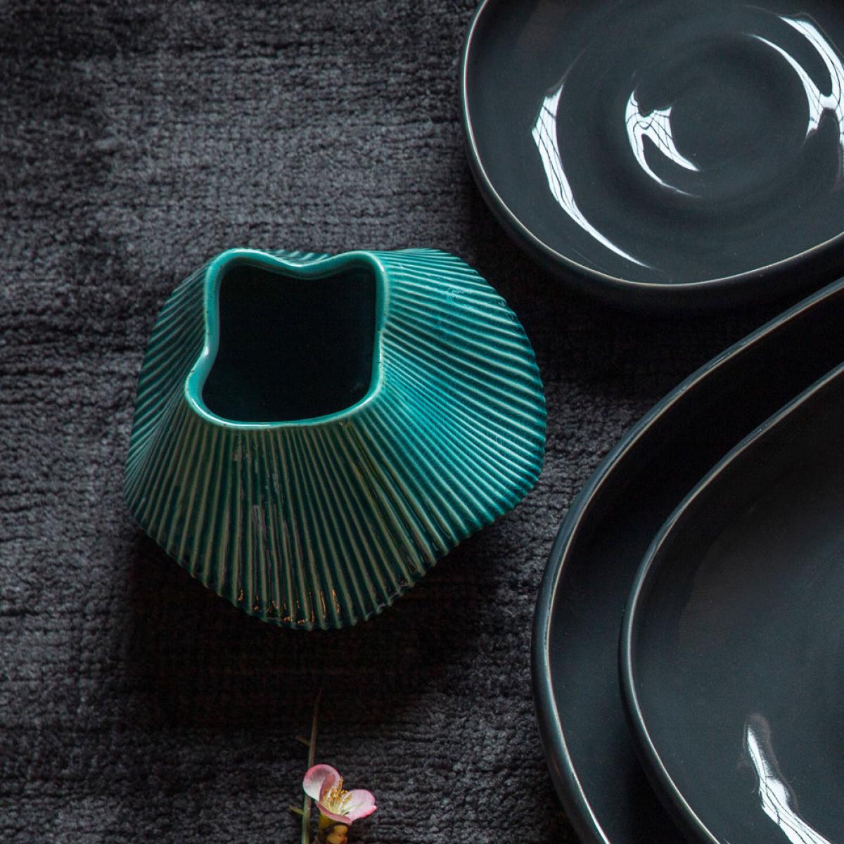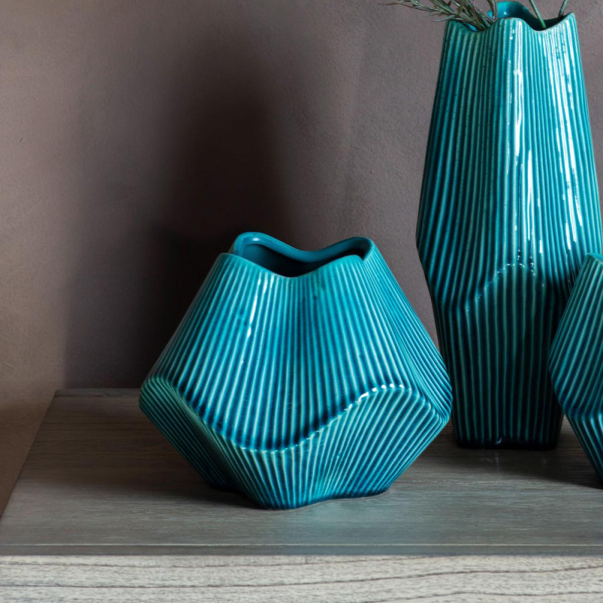 Bring your home to life with this visually stunning and uniquely designed Raverio Ocean Vase. The varying contours and surface of the vase create a striking style that imposes itself in any viewer’. View More. Bring your home to life with this visually stunning and uniquely designed Raverio Ocean Vase. The varying contours and surface of the vase create a striking style that imposes itself in any viewer’s mind. The vivid and dreamlike green and black stripes give it an iridescent vibe that will quickly catch the attention of anyone looking. This vase comes in a variety of sizes, enabling you to place it anywhere in the home comfortably and ensuring that it adds to the style and ambience of that space. Indulge yourself with a vase that brings charm and vibrancy to your home.