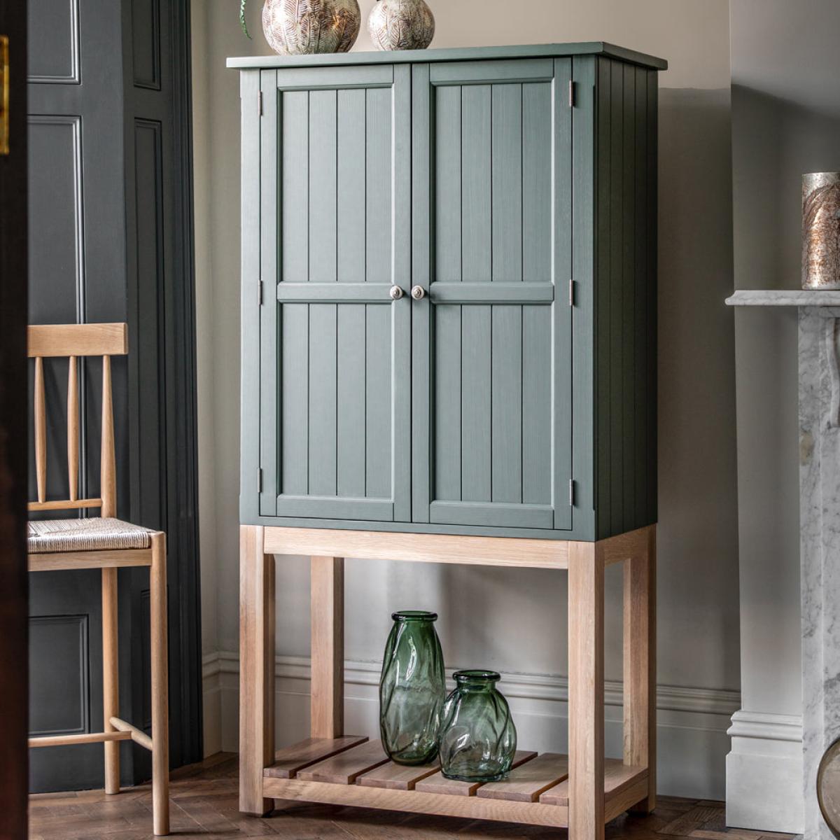 A modern update on a classic farmhouse style cabinet. Offering plenty of space with an upper cupboard and a lower shelf, this cabinet is a great storage solution. The traditional rustic elements are given a contemporary twist with the hand painted textured finish top paired with the solid oak base. Dimensions: H: 170 x W: 90 x D: 45 cm Materials: Oak, Pine, MDF Assembly Required:Yes Care Instructions: Clean with a soft dry cloth