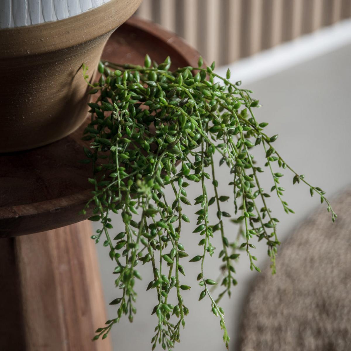 I love the Senecio vine stems for their versatility and naturalistic appeal. They add a refreshing touch of greenery without any maintenance, making them ideal for bringing life into both contemporary and rustic interiors. These work particularly well in hanging baskets, wall features, or as accents in large glass vases on sideboards or shelves. Practical styling tips include grouping a few together for a fuller look or pairing them with neutral pots and minimalist vessels to add texture without overwhelming the space. They’re a smart choice for busy homes or commercial spaces where upkeep is a concern, while still offering the visual warmth of real foliage.