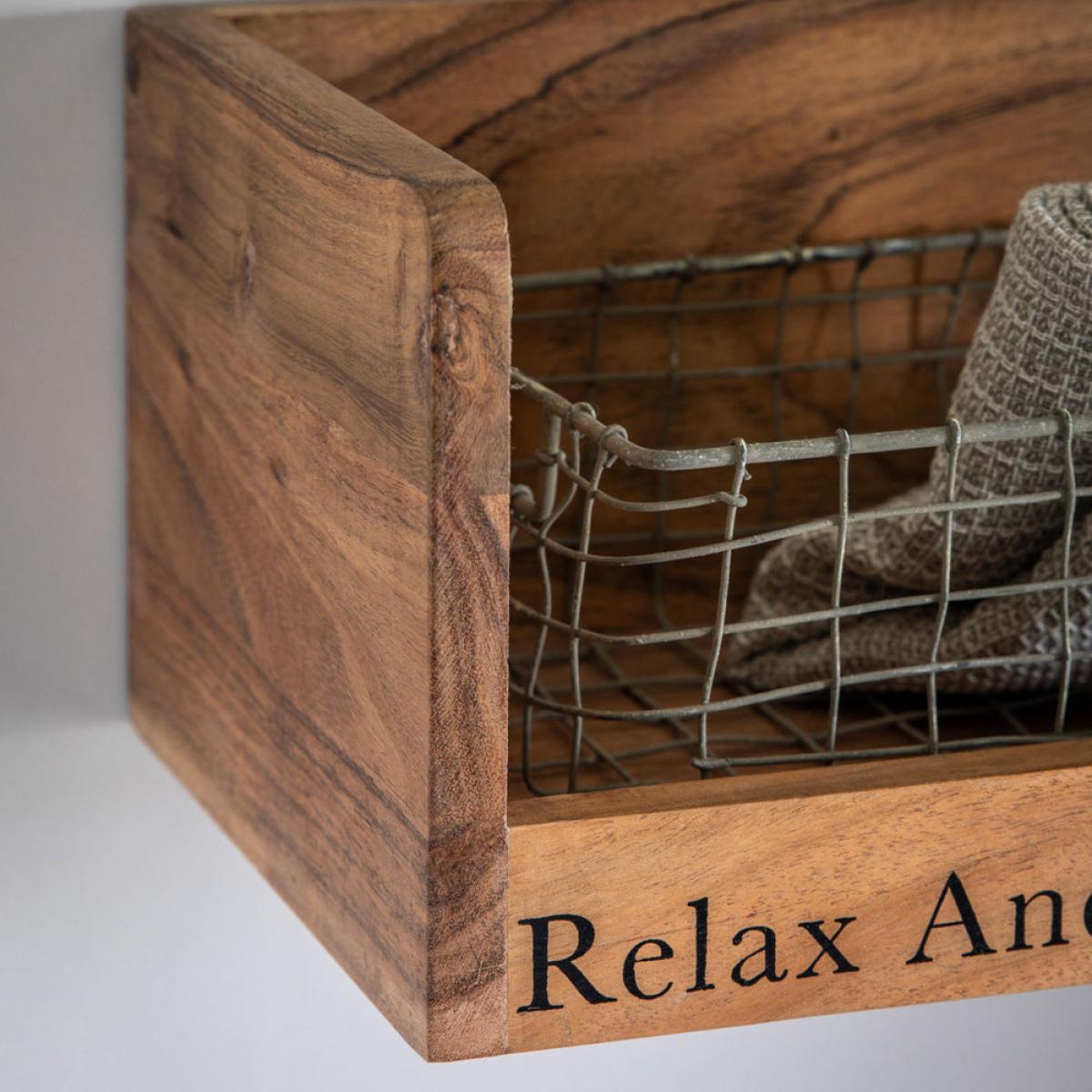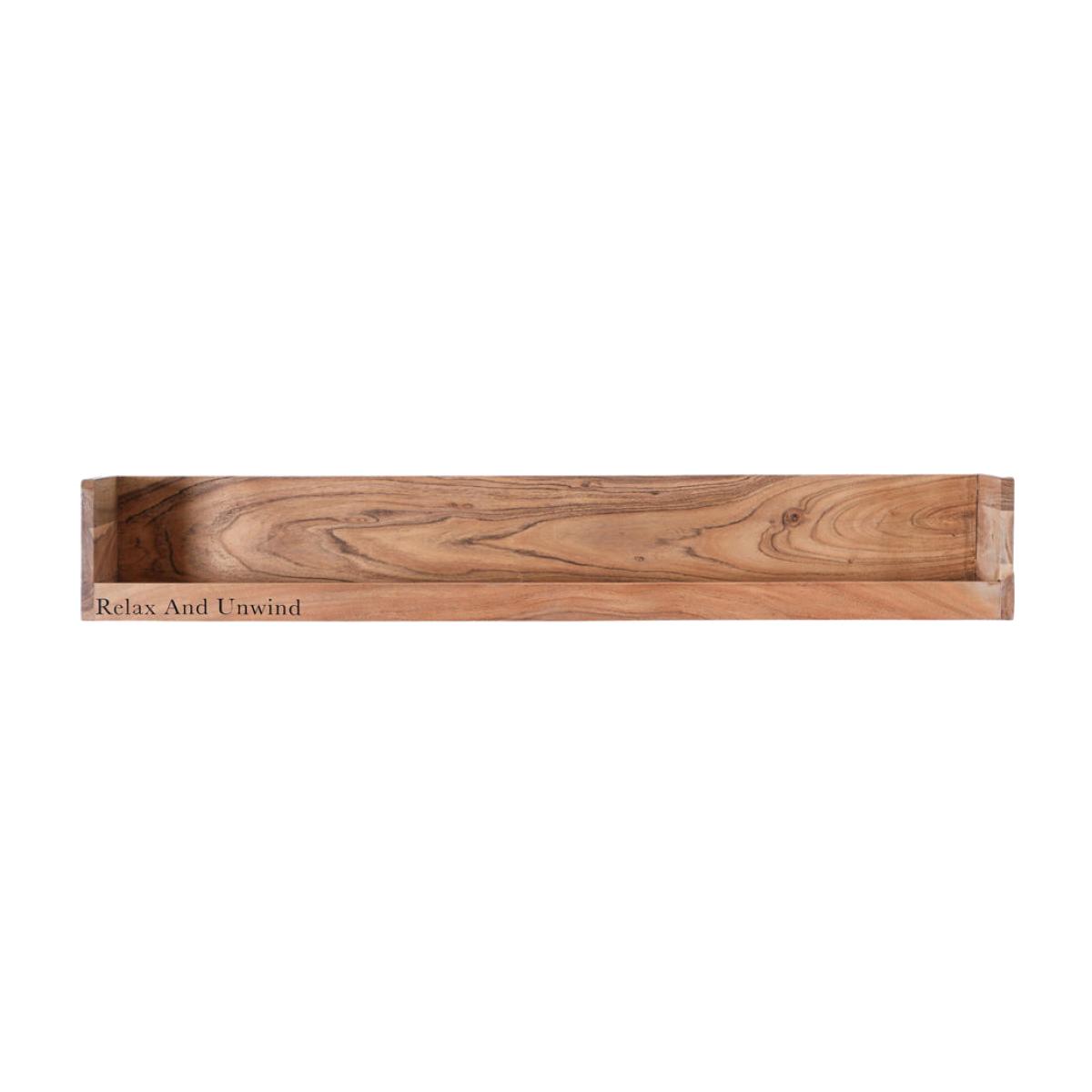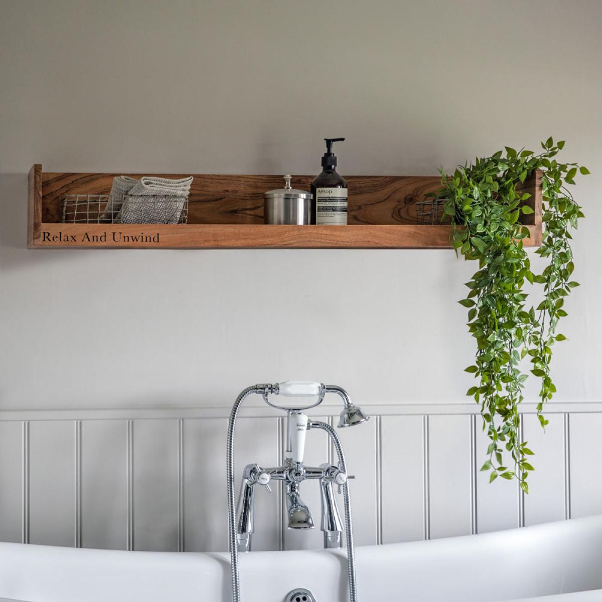 Relax and unwind with the stunning Gallery Interiors Seppanen Relax Bathroom wall shelf. This wonderfully stylish and contemporary shelf is the ideal place to store your toiletries and bathroom essentials. The gorgeous piece was made using beautiful, soft, natural acacia wood, which will certainly add a sense of luxury to your home. Anyone looking for some pampering or to bring the modern spa vibe into their bathroom will find this the perfect addition. The shelf is 15cm high with a width of 100cm and depth of 20cm - providing plenty of room to store all your luxury bath and body products. Dimensions: H: 15 x W: 100 x D: 20 cm Materials: Acacia Wood Assembly Required
