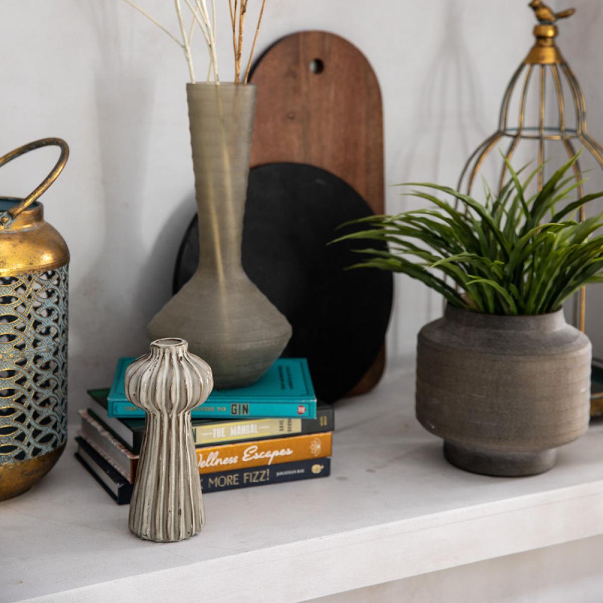 Bring the mellow glow of real candlelight into your space with the superbly textured Gallery Interiors Brewer Candle Holder in white. These gorgeously designed candlesticks come in a pair with a d. View More. Bring the mellow glow of real candlelight into your space with the superbly textured Gallery Interiors Brewer Candle Holder in white. These gorgeously designed candlesticks come in a pair with a delightfully earthy appearance which will complement other accessories in neutral tones or with contrasting textures. Incorporating a range of subtle shades from pale cream through to deep chocolate, these candlesticks will seamlessly blend with a range of interior palettes and the intriguing organic silhouette will make a lasting impression. Ridges traverse the outer curve of the candlesticks from top to bottom, and they are coated with a glaze that's semi-transparent and adds gloss.