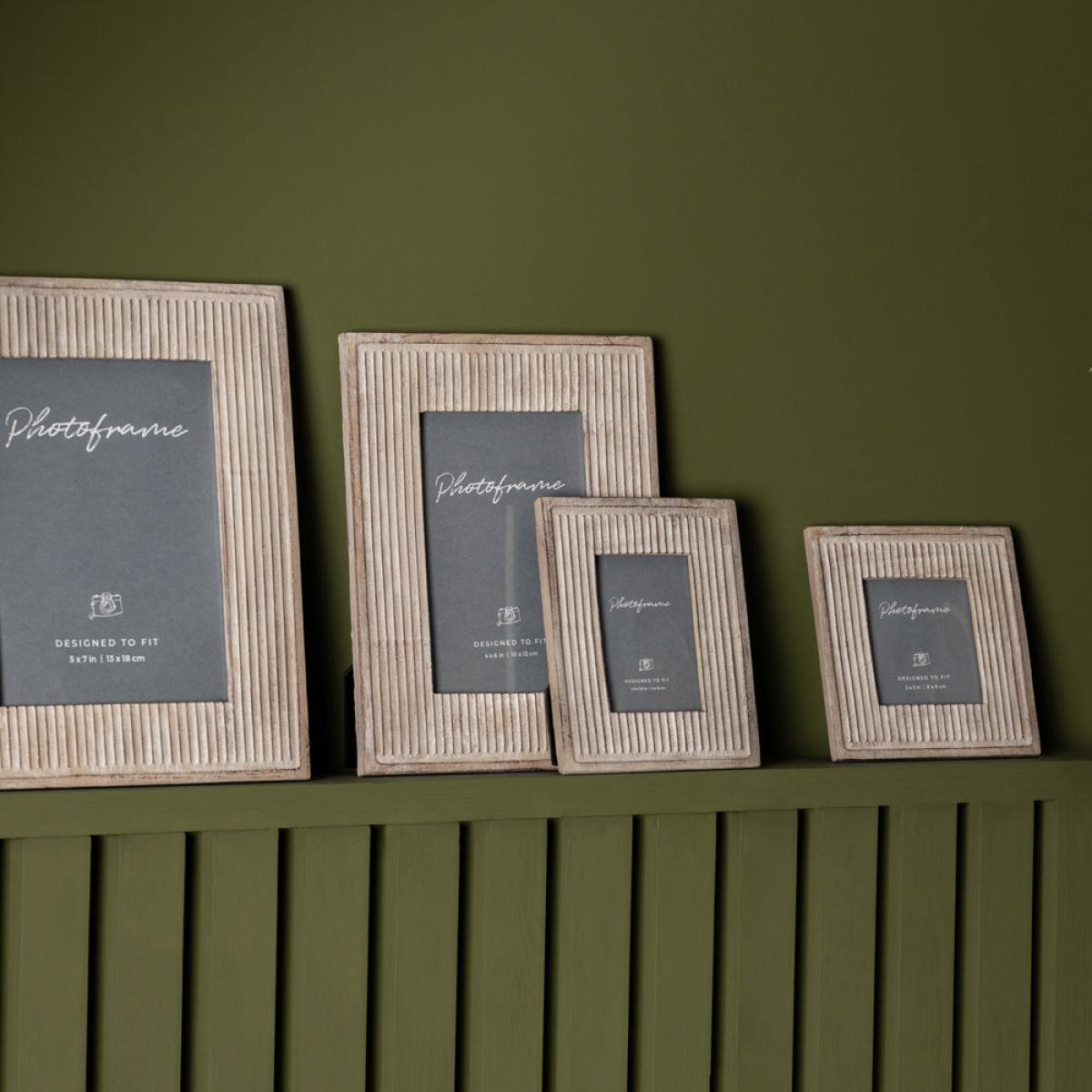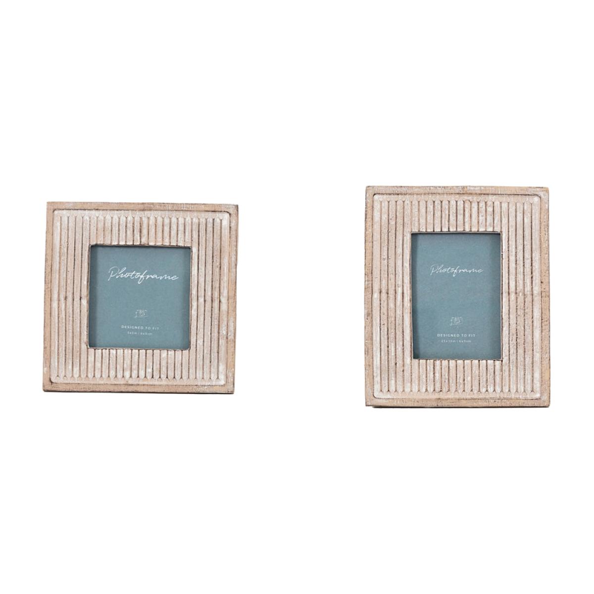 With a driftwood finish and line details, the set of 2 Mini Drift frames are perfect for displaying your favourite photographs. Coordinating frames available so you can create a grouped display. Dimensions: Small - H: 12.5 x W: 11.5 x D: 1 cm Large - H: 12.5 x W: 12.5 x D: 1 cm Materials: Polyresin, Glass, Card Assembly Required: No Care Instructions:Dust with a soft, lint free, clean cloth