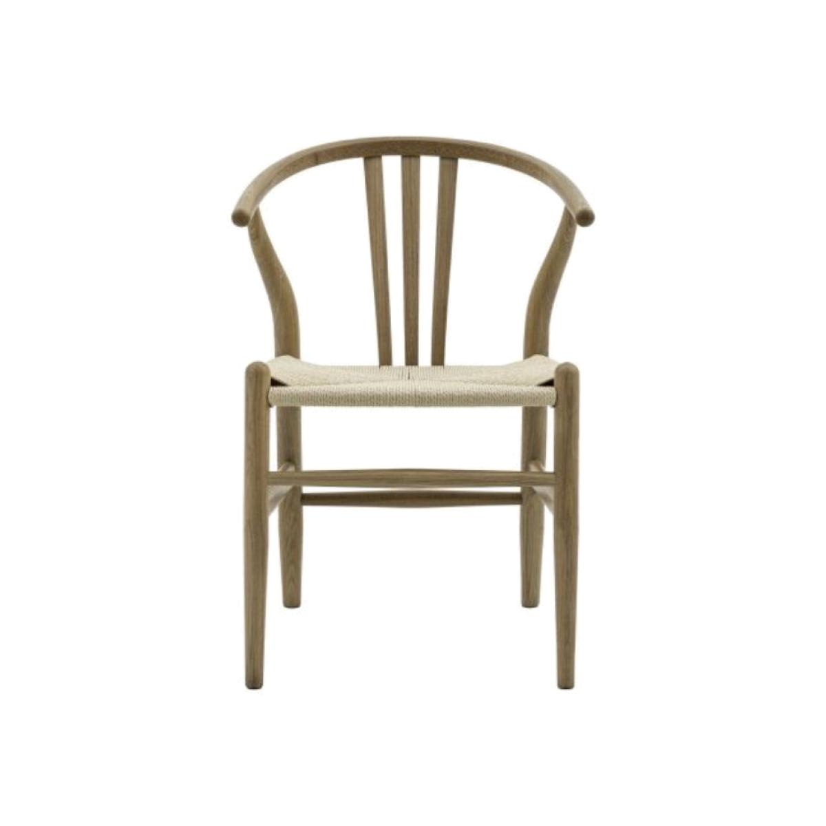 Set of 2 stylish dining chairs perfectly designed to suit both modern and vintage influenced interiors alike. With distinctive wishbone backs and hand woven seats, these chairs will make a stand out style statement wherever they're used. Dimensions: H: 76 x W: 42 x D: 47 cm Materials: Elm, Kraft Paper Assembly Required: No Care Instructions: Clean with a soft dry cloth