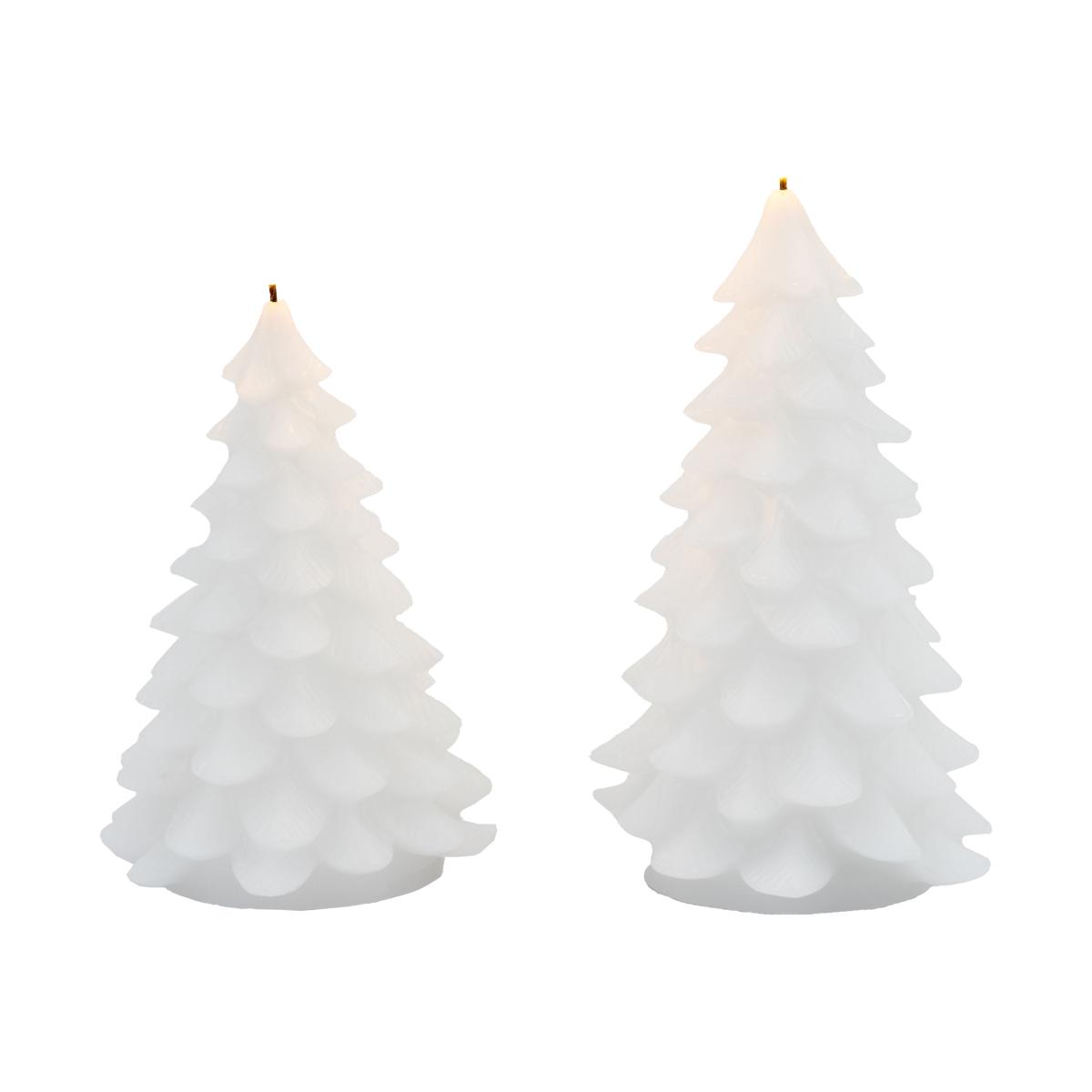This set of realistic candles has an LED light in each that offers and warm ambient glow. This set of two LED Xmas Tree Candles adds an air of luxury and sophistication to the holiday season. The ultra-modern LED technology creates the desired warm glow of traditional candles without the risk of a fire hazard, while the white coloring enhances the festive atmosphere and makes a timeless aesthetic statement. Elevate your holiday display this year with these classic White LED Xmas Tree Candles.