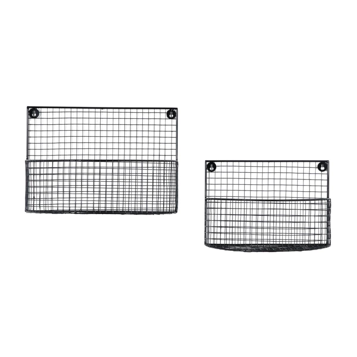 A stunningly stylish way to serve a functional purpose, the Gallery Interiors Shelley Wall Baskets are just what you've been looking for. Perfectly suited to a kitchen environment, the Shelley Wall Baskets offer you the space to store your utensils with a sense of flair and design. The dimensions are generous: H23cm x W:40cm x D:22cm so you can put larger items in the baskets too. Crafted from high quality metal and finished in a matt grey, the baskets are modern, with an industrial vibe. The flat grey tones will work with pretty much any wall colours meaning they will stand the test of time. Dimensions: H: 23 x W: 40 x D: 22 cm Materials: Iron Assembly Required