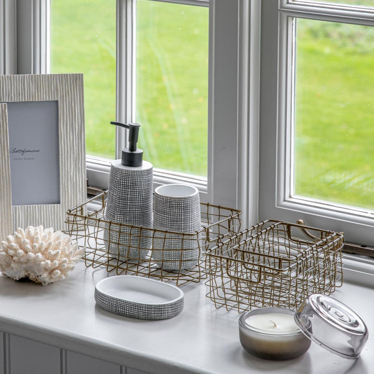 This set of three wire baskets in antique brass is a versatile and stylish addition to many interiors. I love how they add a touch of industrial charm while maintaining a timeless appeal, making them perfect for both modern and vintage-inspired spaces. They work particularly well in kitchens for organising fruit, bread, or pantry essentials, or in bathrooms for holding organisational bits. Practical styling tips include stacking them on shelves for visual interest, using them as a tray for candles or ornaments, or lining them with fabric or paper to create customised storage solutions. Their varying sizes make them ideal for layering or grouping, helping to keep spaces tidy without sacrificing style.