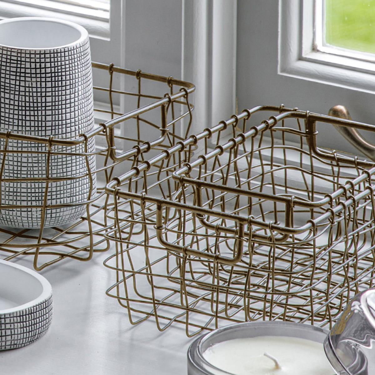 Gallery Interiors Set of 3 Boels Mini Wire Baskets Antique Brass