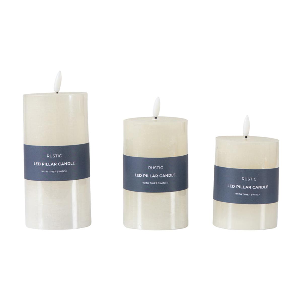 Classic set of three realistic looking LED candles in a classic ivory colour, perfect to add to any display. Featuring an efficient timer switch allowing you to leave them on for a set period with no worries. Dimensions: W: 7.5 x D: 7.5 x H: 15 cm Materials: Paraffin Wax, PP Assembly Required: N Care Instructions:Dust with a clean, lint free cloth. No harsh abrasives or bleach