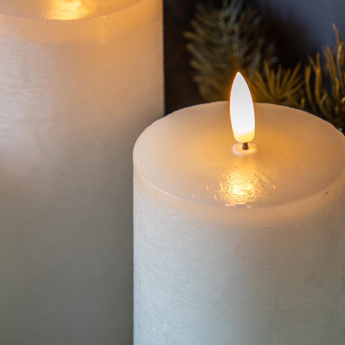 I love this set of three candles for its rustic charm and versatility. The ivory hue makes it easy to incorporate into a variety of interiors, from cosy farmhouse styles to modern minimalism. They work particularly well styled on mantels, side tables, or layered on a dining table for relaxed gatherings. Practical styling tips include pairing them with natural textures like wood or greenery to enhance their rustic appeal, or grouping different heights together for visual interest. Since these are electric candles, they offer the safety and convenience of flameless lighting, making them ideal for settings where real flames might not be practical. Overall, a beautiful and functional addition to any home looking to add warm, ambient lighting.