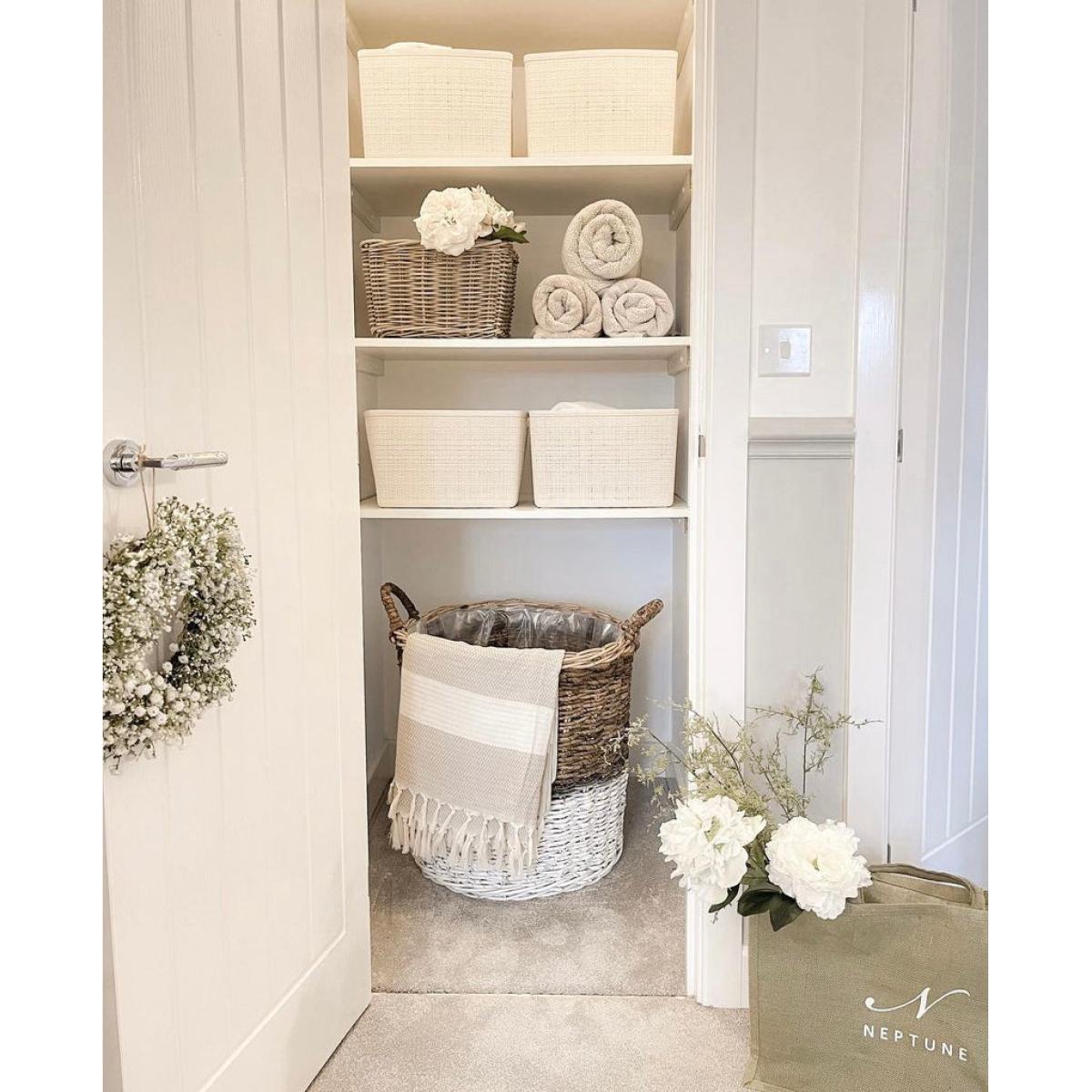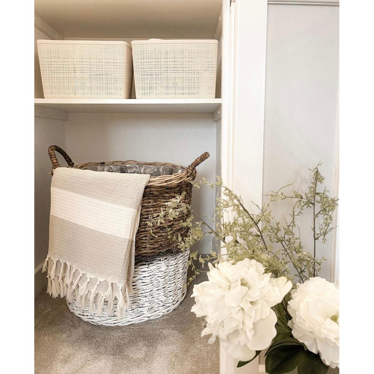 Do you need some more storage space in your home? Then take a look at these Gallery Direct Ramon Baskets. The baskets are made from rattan, and you can choose between either white and natural colouring or black and natural colouring. These baskets are guaranteed to suit any colour scheme due to their simple design. They are robust, so you can store lots of different items in them without the sides drooping. Dimensions:Small: W: 35 x D: 35 x H: 35 cm. Medium: W: 46 x D: 46 x H: 46 cm. Large: W:57 x D:57 x H:56 cm Materials: Plastic, Rattan