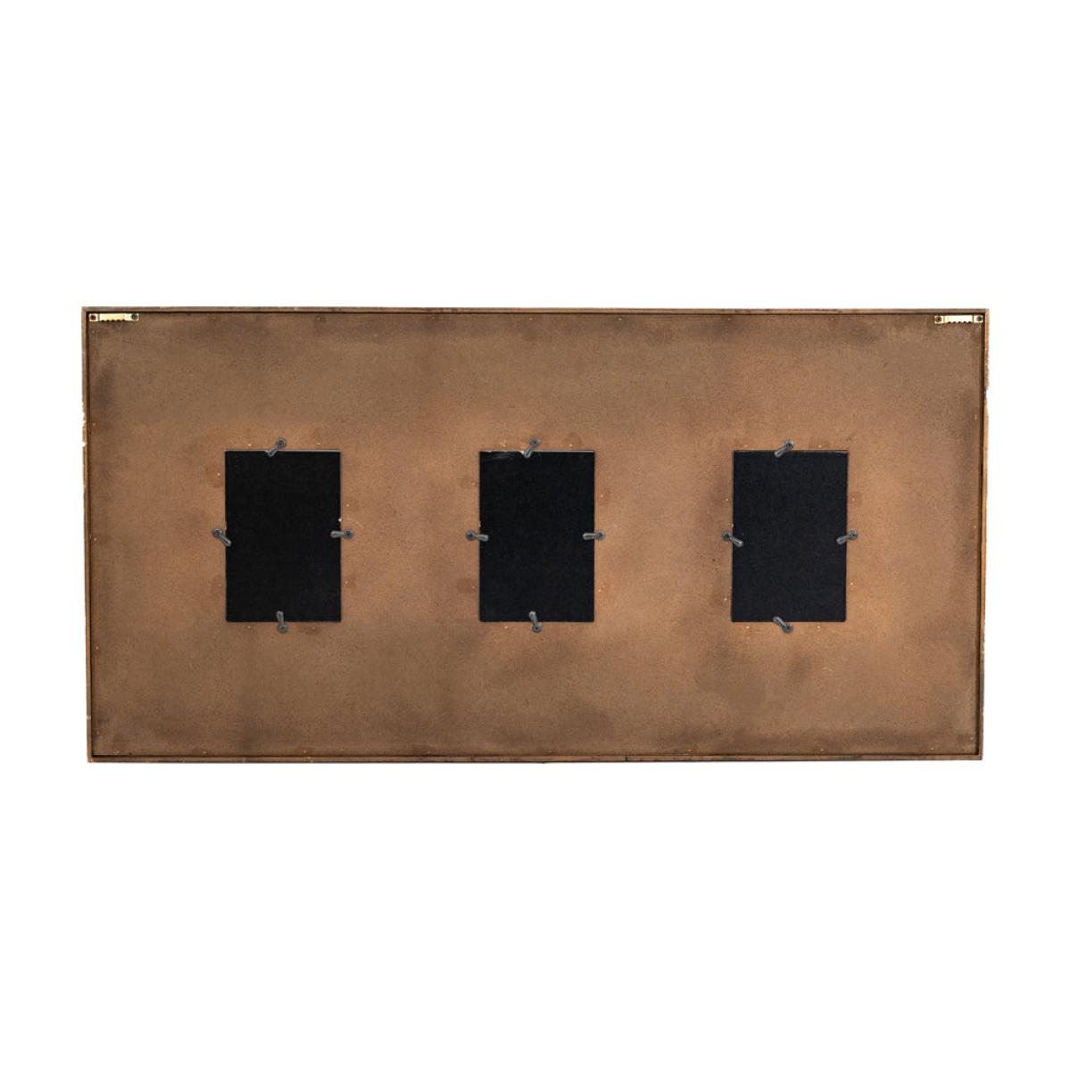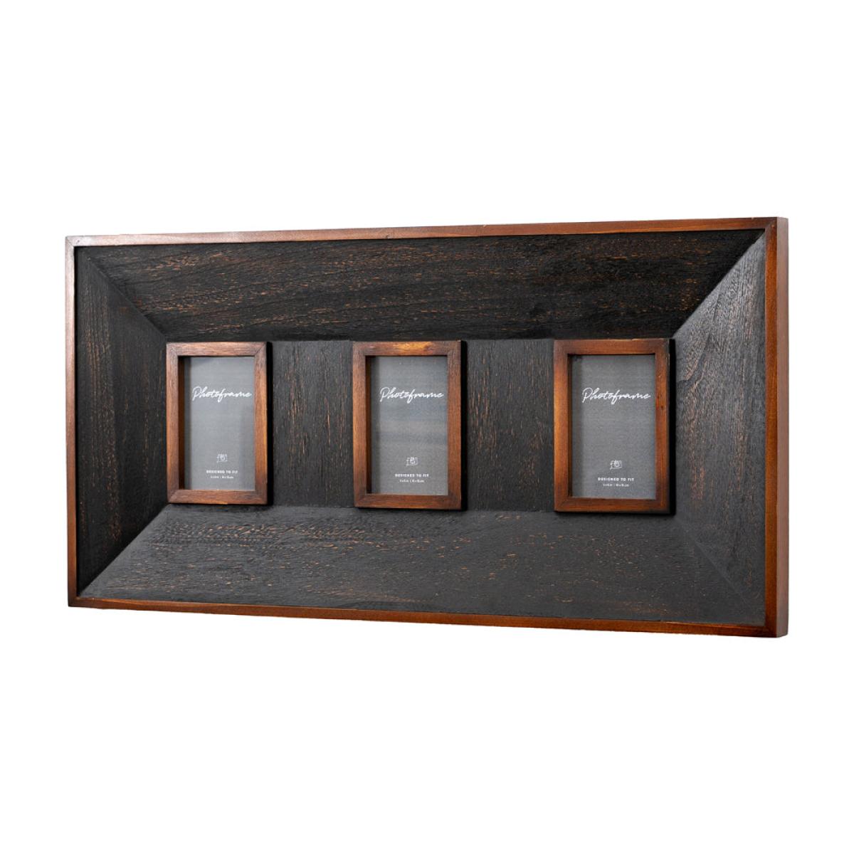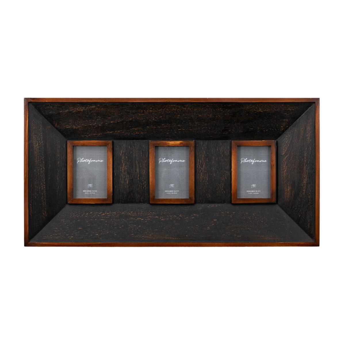 Modern frame designed to show off three pictures at once. The black wood frame and lighter wood trim is elegant and timeless, suiting a variety of interiors with ease. Available in coordinating sizes, allowing you to create an attractive group of photographs. Suitable for picture size 100 x 150mm (4x6 inch). Dimensions: H: 40 x W: 79.5 x D: 4 cm Materials: Firwood, MDF, Glass Assembly Required: No Care Instructions: Clean with a soft dry cloth