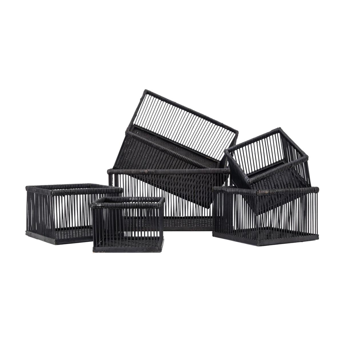 Set of six nesting baskets which are handmade from bamboo with a black finish. They are great to use in a bathroom to store bath and hand towels for a spa feel. Dimensions: H: 20 x W: 30 x D: 39 c. View More. Set of six nesting baskets which are handmade from bamboo with a black finish. They are great to use in a bathroom to store bath and hand towels for a spa feel.