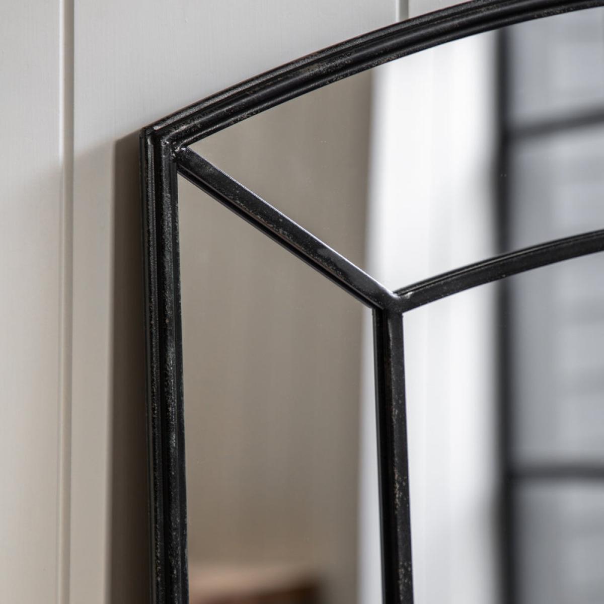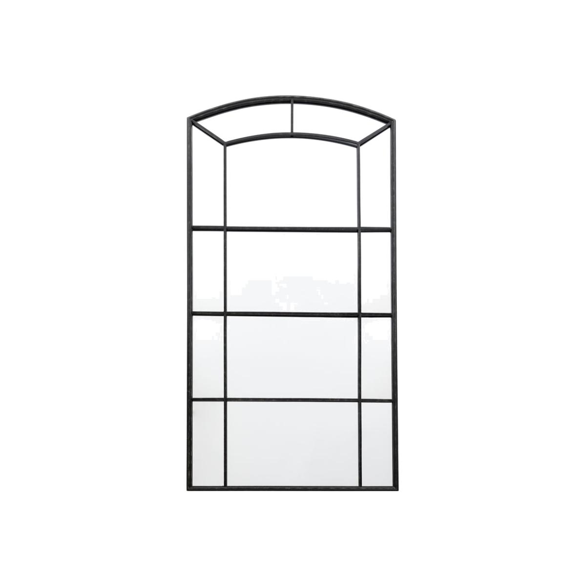 Arched window pane style mirror with contemporay black metal frame to add a touch of style to your wall. Dimensions: H: 150 x W: 80 x D: 2.5 cm Materials: Glass, MDF, Iron Assembly Required: No Care Instructions: Clean with a soft dry cloth. Fixing Type: Keyhole Hanging Orientation:Portrait