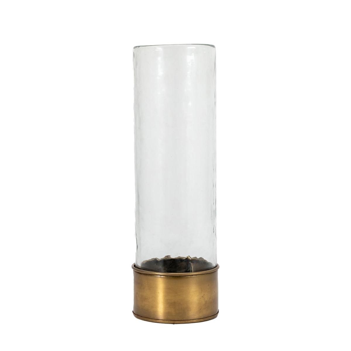 With beautiful handmade dappled glass designed to catch the light, this vase has a simple uncomplicated shape and bronze base. Dimensions:Small - H: 25 x W: 10 x D: 10 cm Medium - H: 35 x W: 10 x D: 10 cm Large - H: 45 x W: 10 x D: 10 cm Materials: Glass, Iron Assembly Required: No Care Instructions:Dust with a soft, lint free, clean cloth