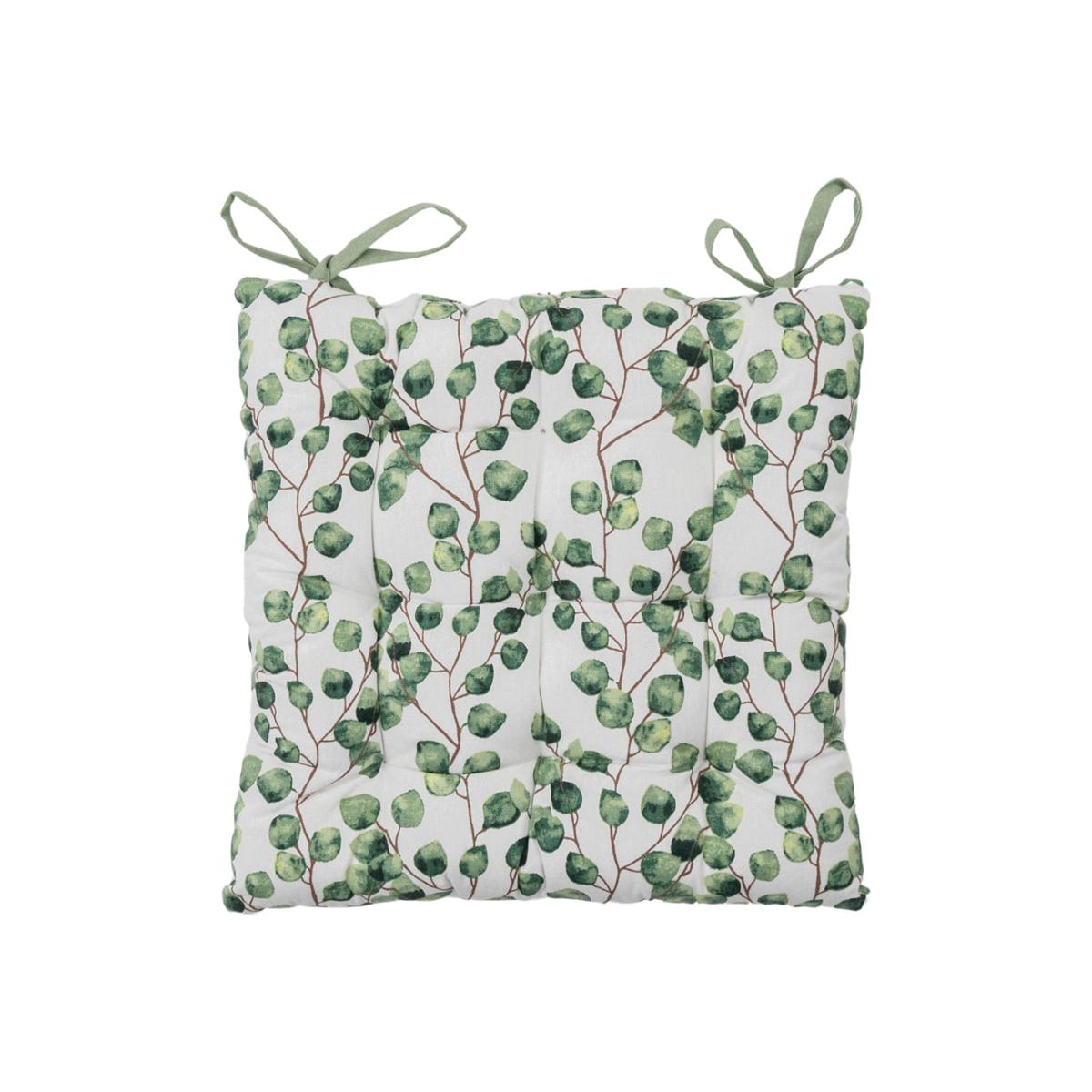 Bring a touch of style and comfort to your home with these reversible Eucalyptus seatpads from Gallery Interiors. These generously padded seatpads are perfect for dining or garden chairs where the. View More. Bring a touch of style and comfort to your home with these reversible Eucalyptus seatpads from Gallery Interiors. These generously padded seatpads are perfect for dining or garden chairs where the hard surface can be a little uncomfortable. The square seatpads have an off-white background with a pattern of small branches with pretty green leaves. The other side of the cushion has stripes of different widths in light and dark green, lemon yellow and grey. The seatpads measure 40cm square and have a depth of 3. 6cm. The cushions have two green ribbons on one side to secure them to the chair.