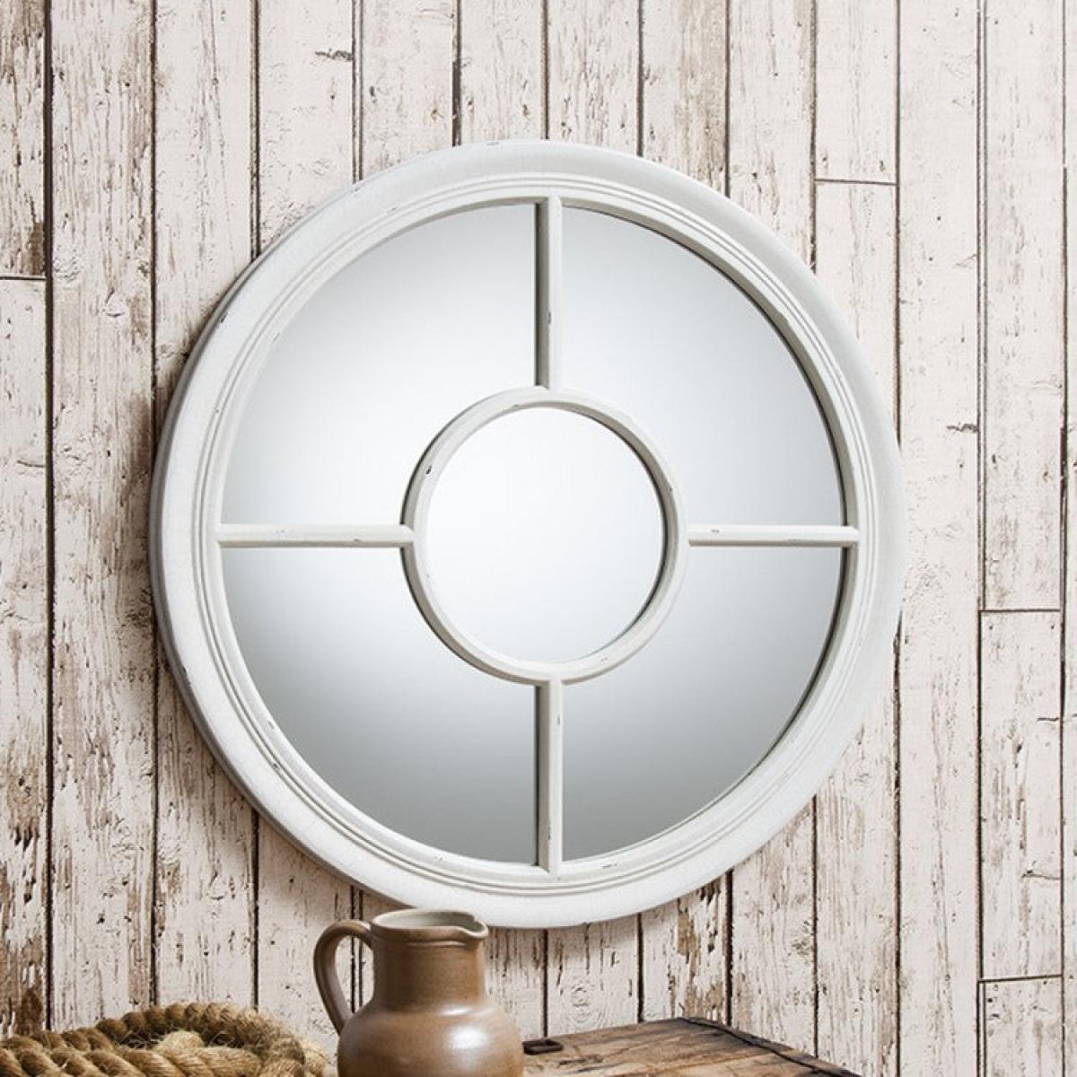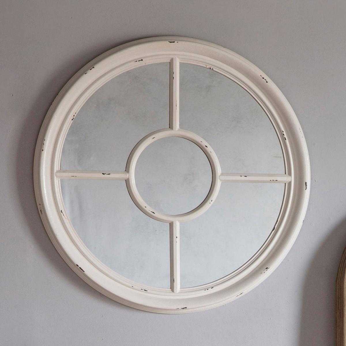 Vintage porthole mirror in a light crackle textured finish. Dimensions: W:70 x H:70 cm