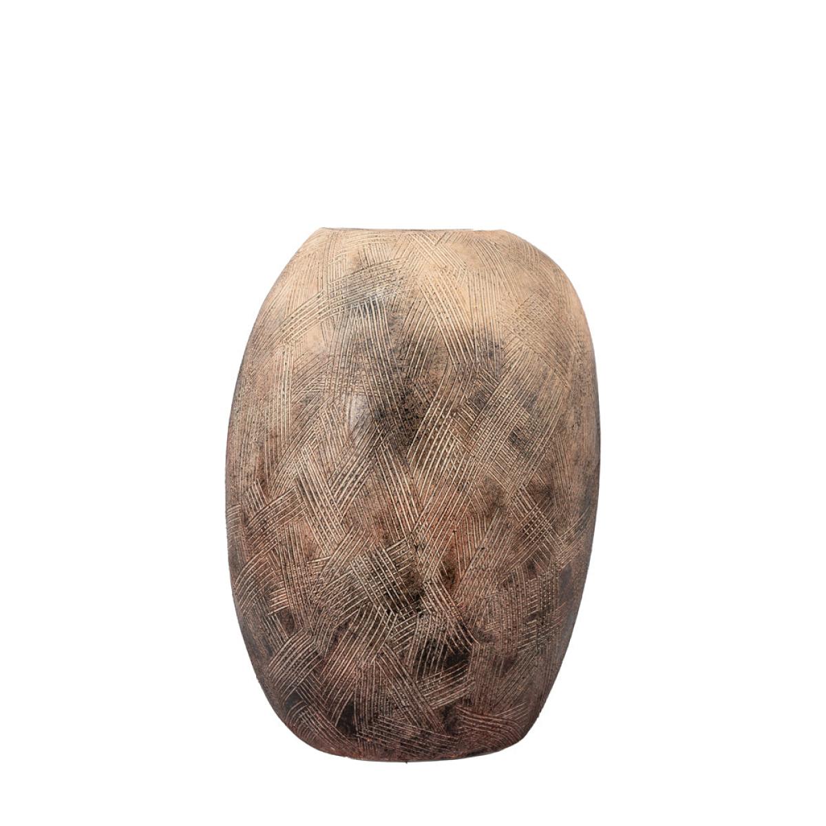 With earthy black and brown tones and a rough textured surface, this vase stunning handmade vase has rustic feel, each one is truly unique. Dimensions: Small - H: 30 x W: 22 x D: 21 cm Large - H: 40 x W: 28 x D: 25 cm Materials: Earthenware Assembly Required: No Care Instructions:Dust with a soft, lint free, clean cloth