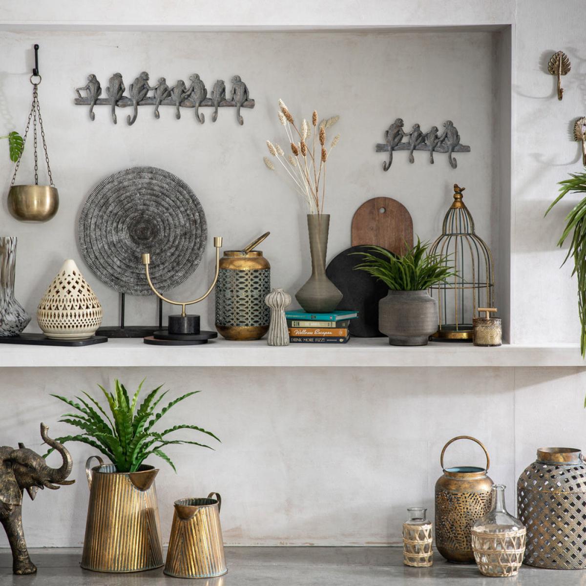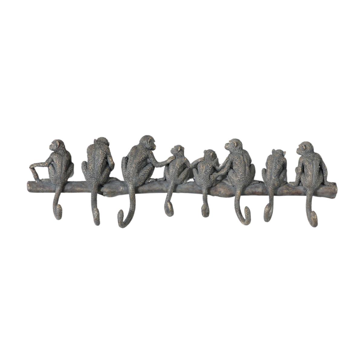 We have managed to find a truly unique set of hooks in the form of the Gallery Interiors Vaast Monkey Family. Featuring a whole family of characterful monkeys sitting on a branch or pole, this set of eight hooks is perfect for everything from coats to kitchen utensils, towels and hanging plants. They are also such great fun and we found ourselves making up backstories for each uniquely moulded monkey; what's more, we gave each one a funny name! Decorated by hand in a bronze-effect finish, the Gallery Interiors Vaast Monkey Family has generous dimensions of 21.5cm high, 69.5cm wide and 5.5cm deep. Dimensions: H: 21.5 x W: 69.5 x D: 5.5 cm Materials: Polyresin / Stone Assembly Required