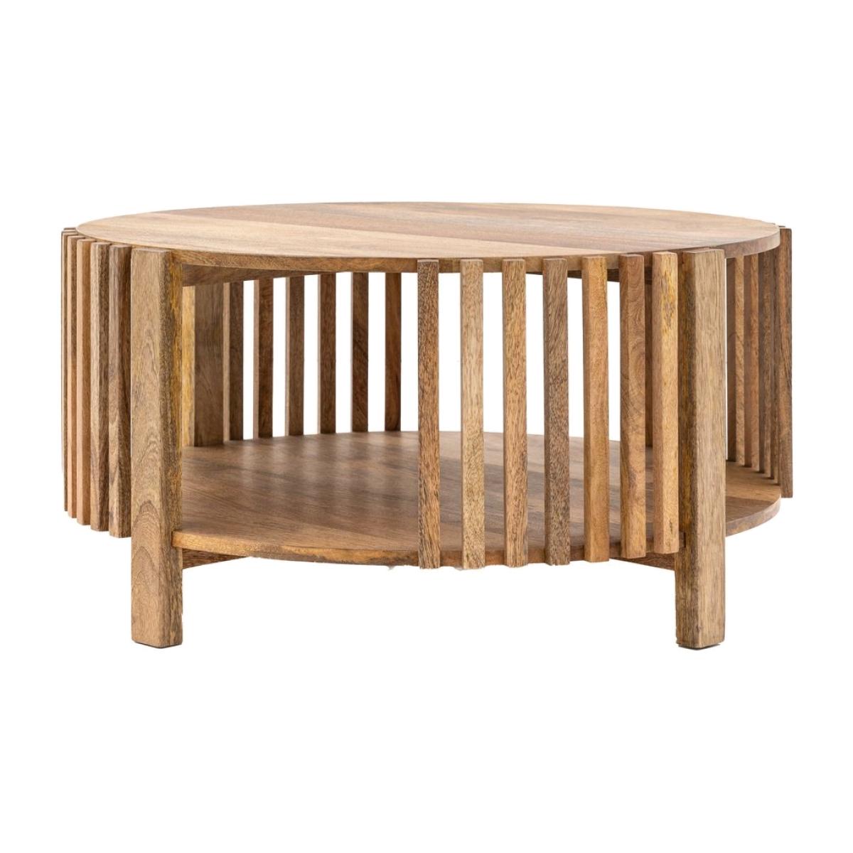 This striking slatted coffee table will certainly grab your attention. The unusual vertical slatted design features a lower shelf perfect for storage, and is crafted from mango wood with a natural finish that enhances the rich deep grain of the wood. Coordinating items also available. Additional Information