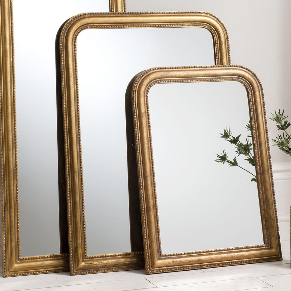 Elegance created through understated style and grace is hard to achieve but the Gallery Interiors Worthington mirror has captured it perfectly. With its classic shape of a low curved top and straig. View More. Elegance created through understated style and grace is hard to achieve but the Gallery Interiors Worthington mirror has captured it perfectly. With its classic shape of a low curved top and straight base, this mirror brings style to many kinds of décor,. The beading around the frame adds texture and detail for a finishing flourish. Available in both a gold and silver finish, you can complement your existing colour scheme or choose a striking accent for a room. Leant against a wall in a dressing room, the long mirror is perfect for getting changed, the wider version over a mantle opens up a whole room.