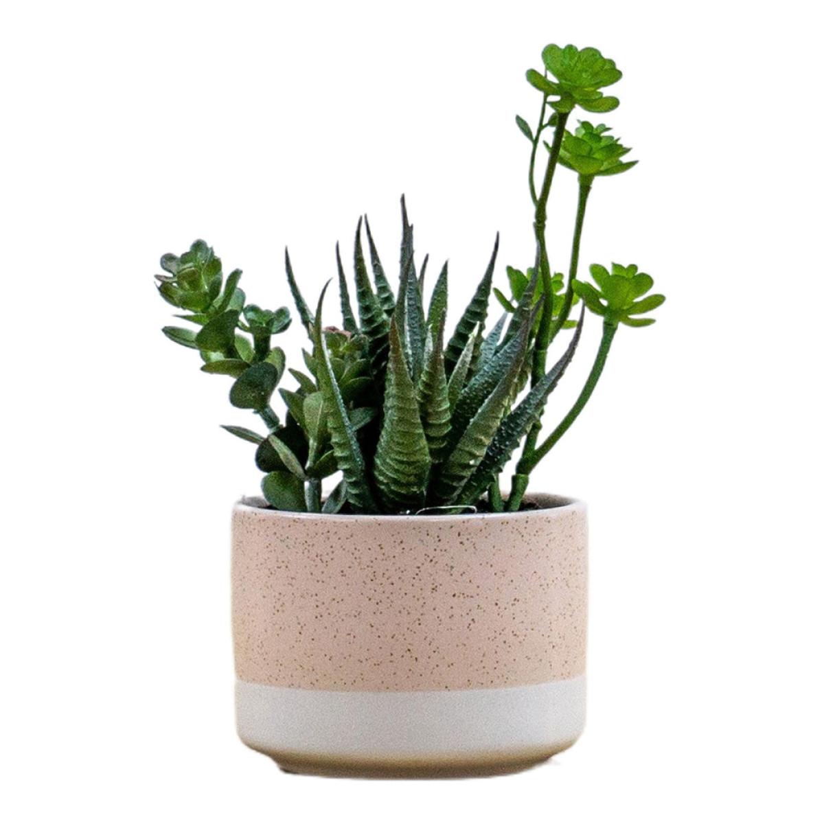 This beautiful agave mix is the perfect addition to any interior, complete with a multi-tonal blush and white ceramic pot. Dimensions: H: 16 x W: 16 x D: 8 cm. Material: PE / PVC / Ceramics. View More. This beautiful agave mix is the perfect addition to any interior, complete with a multi-tonal blush and white ceramic pot.
