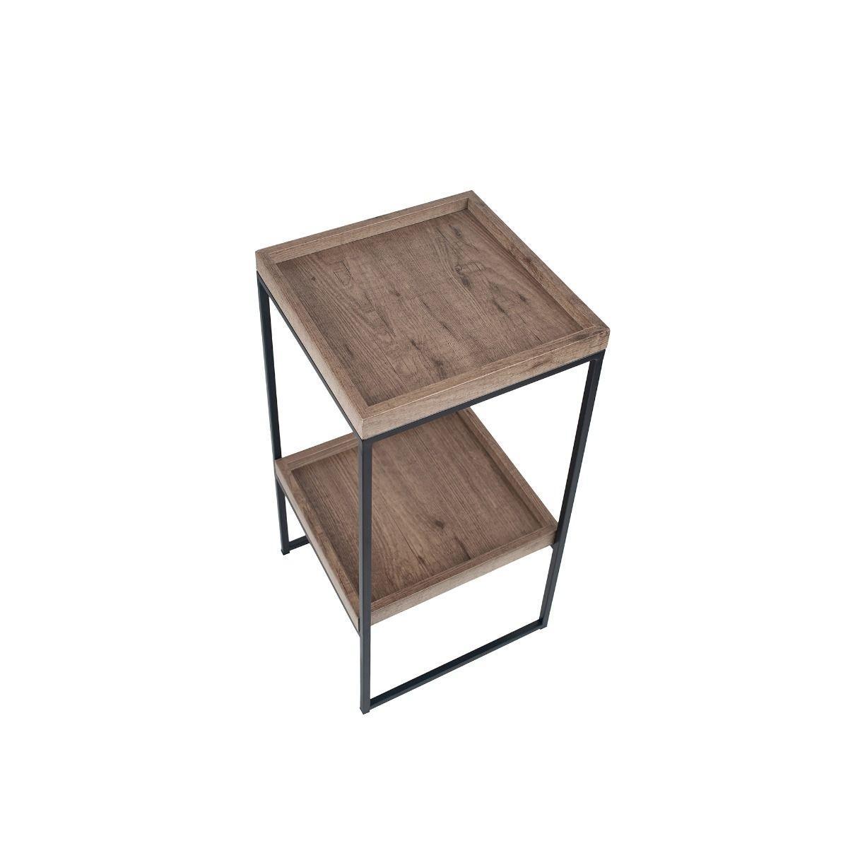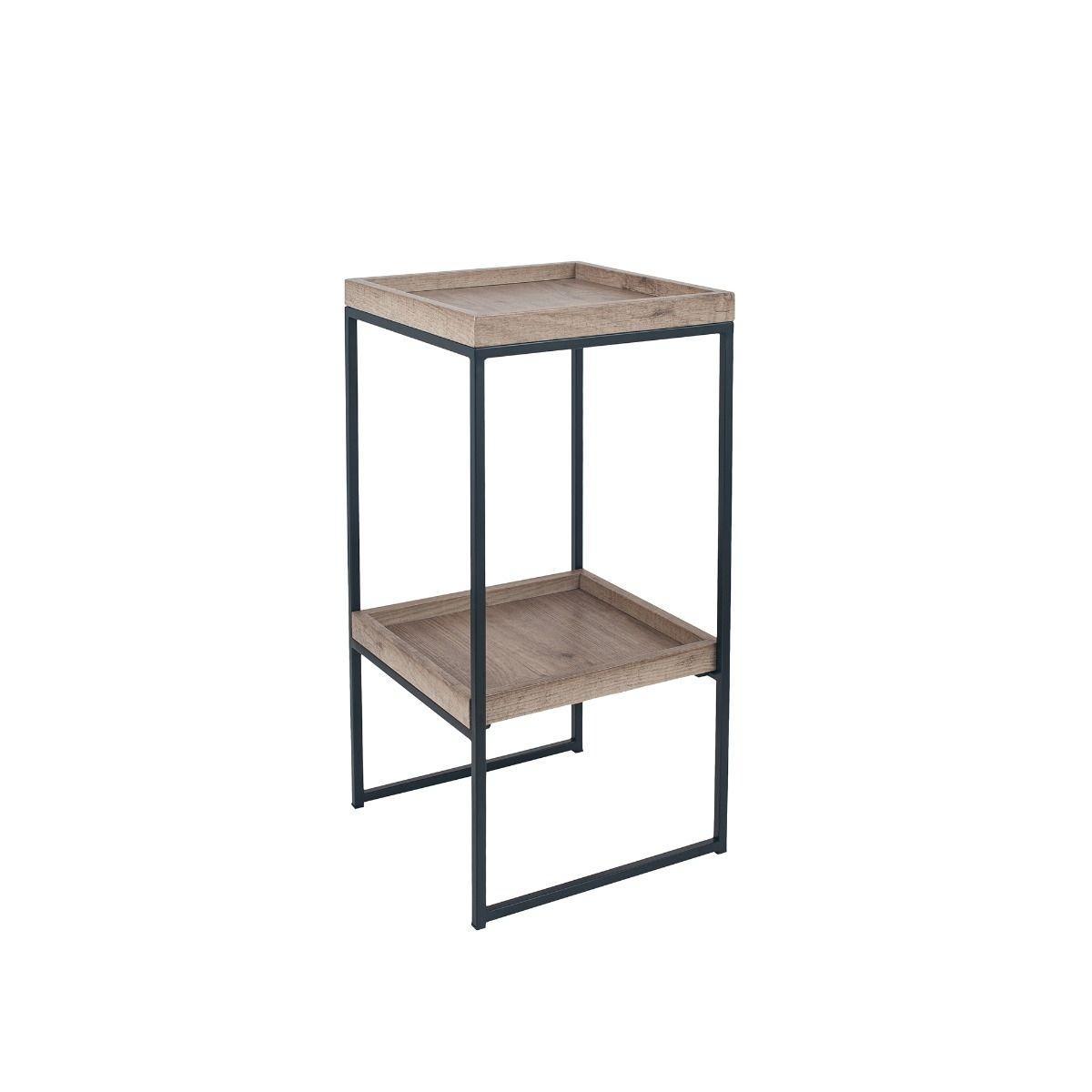 Sleek Wooden and Black Metal Side Table. Add this side table to your room as a functional and fashionable piece. The Gallery range combines smart, black metal with rustic and natural wood to create a unique theme throughout the room.