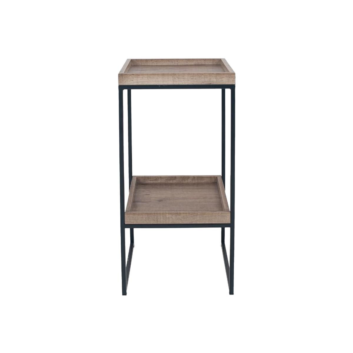 The side table is a great mix of natural wood warmth and industrial edge thanks to its black metal frame. I love its versatility-it works well in both contemporary and rustic interiors, and adds a touch of understated sophistication to living rooms or bedrooms. When styling, consider layering with textured textiles or greenery to soften the metal’s sleekness. Practical tips include using the top surface for a lamp or favourite decor piece, while the lower tray is perfect for practical items like books or a tray for coasters. Its slender profile also makes it ideal for smaller spaces or beside a sofa where space is limited.
