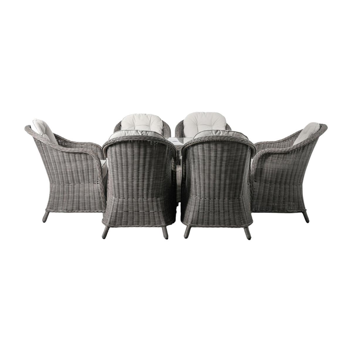 This 6 Seater Oval Dining Set offers a lovely outdoor dining table and six coordinating dining chairs. They are crafted from all weather 5mm PE rattan with a hand woven mixed half round/full round weave in a washed grey finish. For comfort, the chairs have luxurious showerproof cushions in a soft grey colour to complement the colour of the rattan. The table has a shelf and a parasol hole and can be used with our crank and tilt parasols. The frames are powder coated aluminium and the table top is tempered glass. The set is also available in a natural finish. The collection offers a great range of pieces, so you can select the ones to suit your requirements. *Moot Trading Ltd is not a lender and acts only as an introducer. The credit product is provided by Klarna Bank AB (publ). Credit is only available to permanent UK residents aged 18 and over, subject to status. Terms and conditions apply. Please note that the following products are not regulated by the FCA: Pay in 30 days and Pay in 3 instalments. Read More.