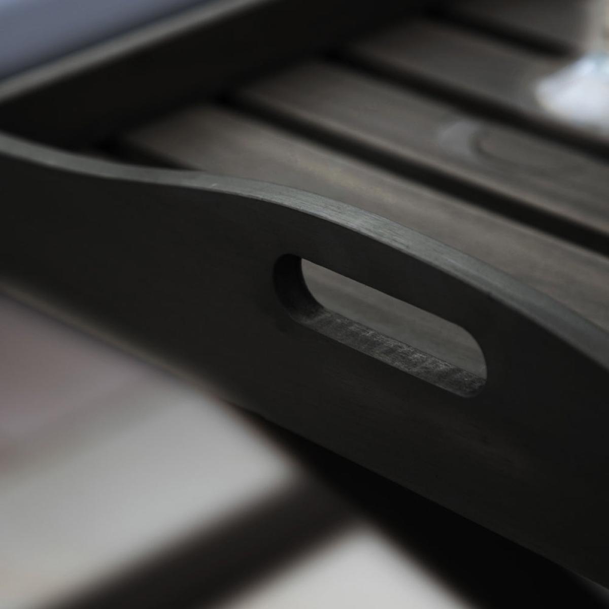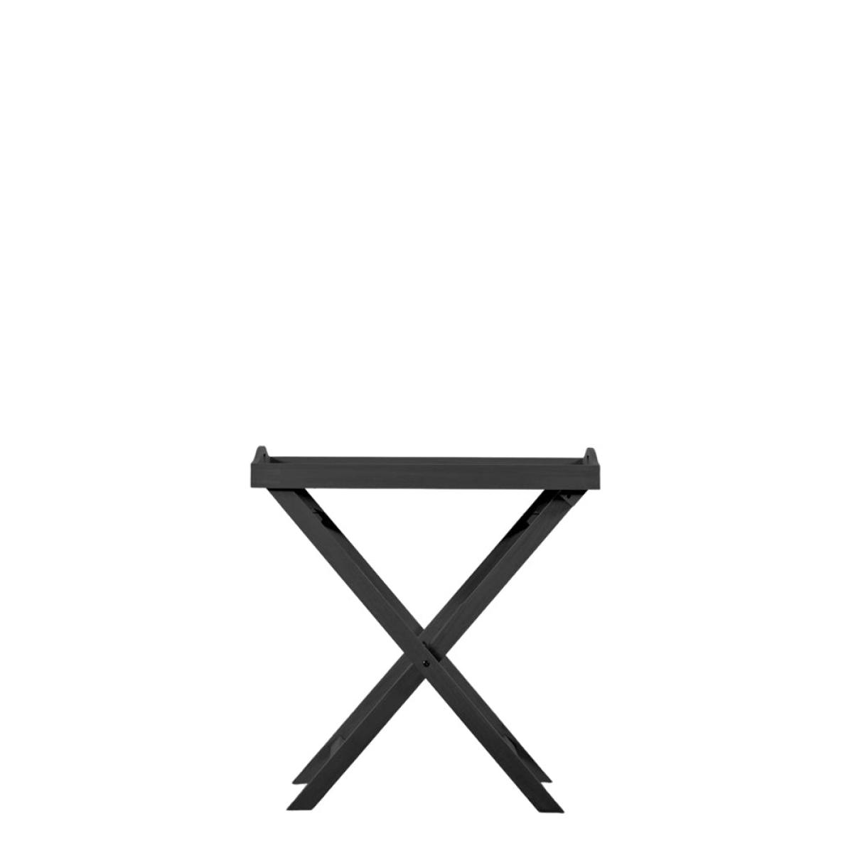 This unusual Tray Table offers a practical stylish solution for outdoor living. The table folds for easy storage when not in use and features a tray-style top, which is ideal when you have guests o. View More. This unusual Tray Table offers a practical stylish solution for outdoor living. The table folds for easy storage when not in use and features a tray-style top, which is ideal when you have guests or just for your own use. It is crafted from acacia wood with a whitewashed painted finish. The table is also available in a natural-look finish and a charcoal finish. It is part of a collection of outdoor furniture which offers a great range of pieces, so you can select the ones to suit your requirements.