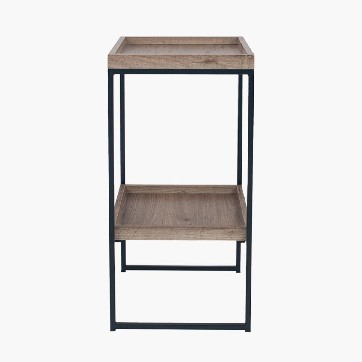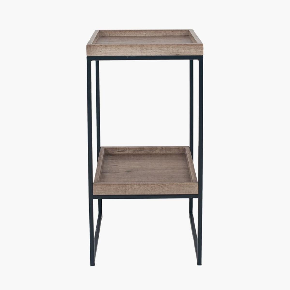 Gallery 2-shelf side table, featuring a matte black metal frame, natural wood veneer shelves and removable top shelf. This side table features a sleek matte black metal frame that exudes contemporary elegance. The frame's clean lines and minimalist design make it a perfect fit for various interior styles, from modern to industrial. The table is equipped with natural wood veneer shelves, adding a touch of warmth and organic beauty to the piece. The natural wood contrasts beautifully with the matte black frame, creating a balanced and sophisticated look. The shelves provide ample space for storing books, decorative items or everyday essentials. One of the standout features of the Gallery Side Table is its removable top shelf, offering flexibility and convenience. Whether you need extra storage space or prefer an open design for a minimalist look, this side table adapts to your needs. Perfect for living rooms, bedrooms or any cosy corner, the Gallery side table combines functionality with chic design. Its sturdy construction ensures durability, while the combination of materials adds a touch of modern elegance to your space. Gallery 2-shelf side table, featuring a matte black metal frame, natural wood veneer shelves and removable top shelf. This side table features a sleek matte black metal frame that exudes contemporary elegance. The frame's clean lines and minimalist design make it a perfect fit for various interior styles, from modern to industrial. The table is equipped with natural wood veneer shelves, adding a touch of warmth and organic beauty to the piece. The natural wood contrasts beautifully with the matte black frame, creating a balanced and sophisticated look. The shelves provide ample space for storing books, decorative items or everyday essentials. One of the standout features of the Gallery Side Table is its removable top shelf, offering flexibility and convenience. Whether you need extra storage space or prefer an open design for a minimalist look, this side table adapts to your needs. Perfect for living rooms, bedrooms or any cosy corner, the Gallery side table combines functionality with chic design. Its sturdy construction ensures durability, while the combination of materials adds a touch of modern elegance to your space.