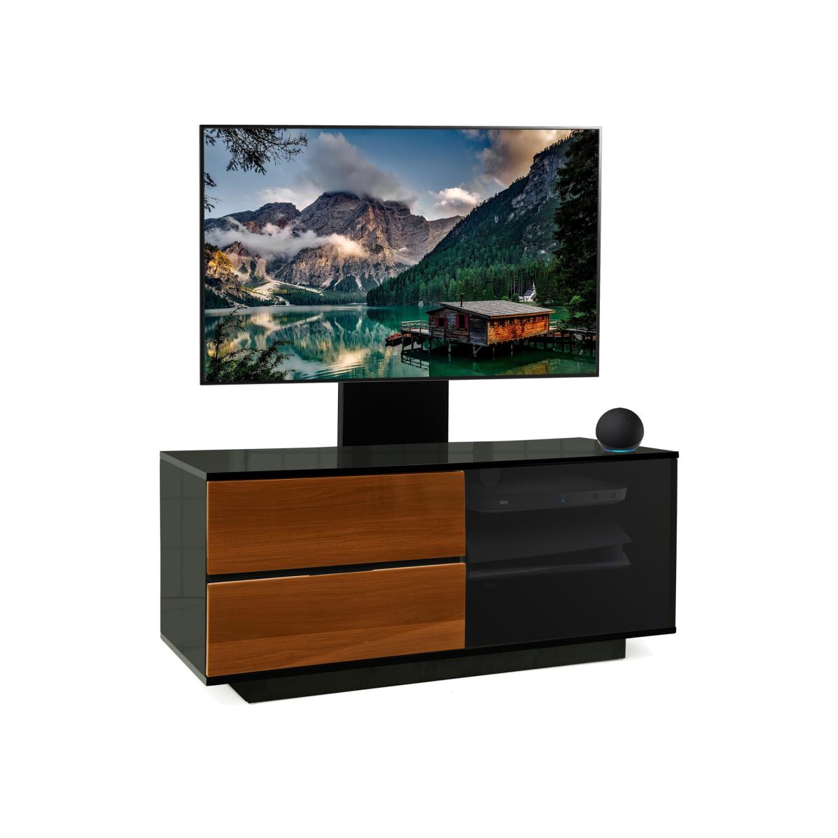 It comes complete with the revolutionary BEAMTHRU Remote Friendly Door system to allow remote control signals to pass through the glass and operate your equipment with ease. The floating effect design raises the Gallus TV stand off the ground revealing more floor, thus creating the illusion of more space. The Gallus cabinet has two contemporary drawers to hide and quickly access your discs, remotes, games, 3D glasses and other accessories. It also features 2 shelves with removable 5mm polished safely glass to house any tall units. The best feature of the Gallus Ultra TV cabinet is the compatibility with the Screen Mounting Arm that transforms the cabinet into a cantilever style system to give your TV a floating appearance.