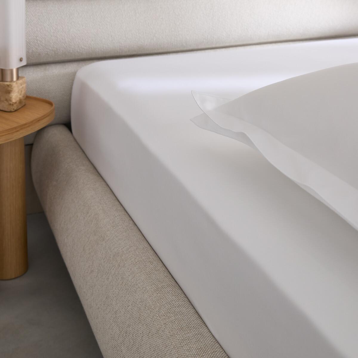 Galor cotton sateen combines timeless elegance with comfort. Made in Portugal, it has an understated, discreet shine. The very dense weave retains all its strength over time. An enveloping sensation of softness for perfect comfort. Product Details • 100% cotton • Organic cotton • Classic cotton sateen • 400 Thread Count: a common indicator for measuring the quality of fabric is the number of threads per cm². Different sensations are made possible thanks to the weaving and the number of threads present. Indeed, an optimal number of threads makes the bed linen particularly soft. • Flap height 30cm for thick mattresses. Care Advice Follow our care tips to maintain the quality of your laundry • Machine washable at 40°C • Tumble dry at low temperature • Iron at average temperature • Do not dry clean. Dimensions • 90 x 190cm: Single • 140 x 190cm: Single • 160 x 200cm: King • 180 x 200cm: King • Made in Europe. • Cotton from organic farming. Organic farming does not use any chemicals, pesticides, insecticides or GMOs. Produced with minimal impact on biodiversity. • OEKO-TEX® Standard 100. Standard 100 certification by OEKO-TEX® tests textile products for harmful substances via an independent, international label.