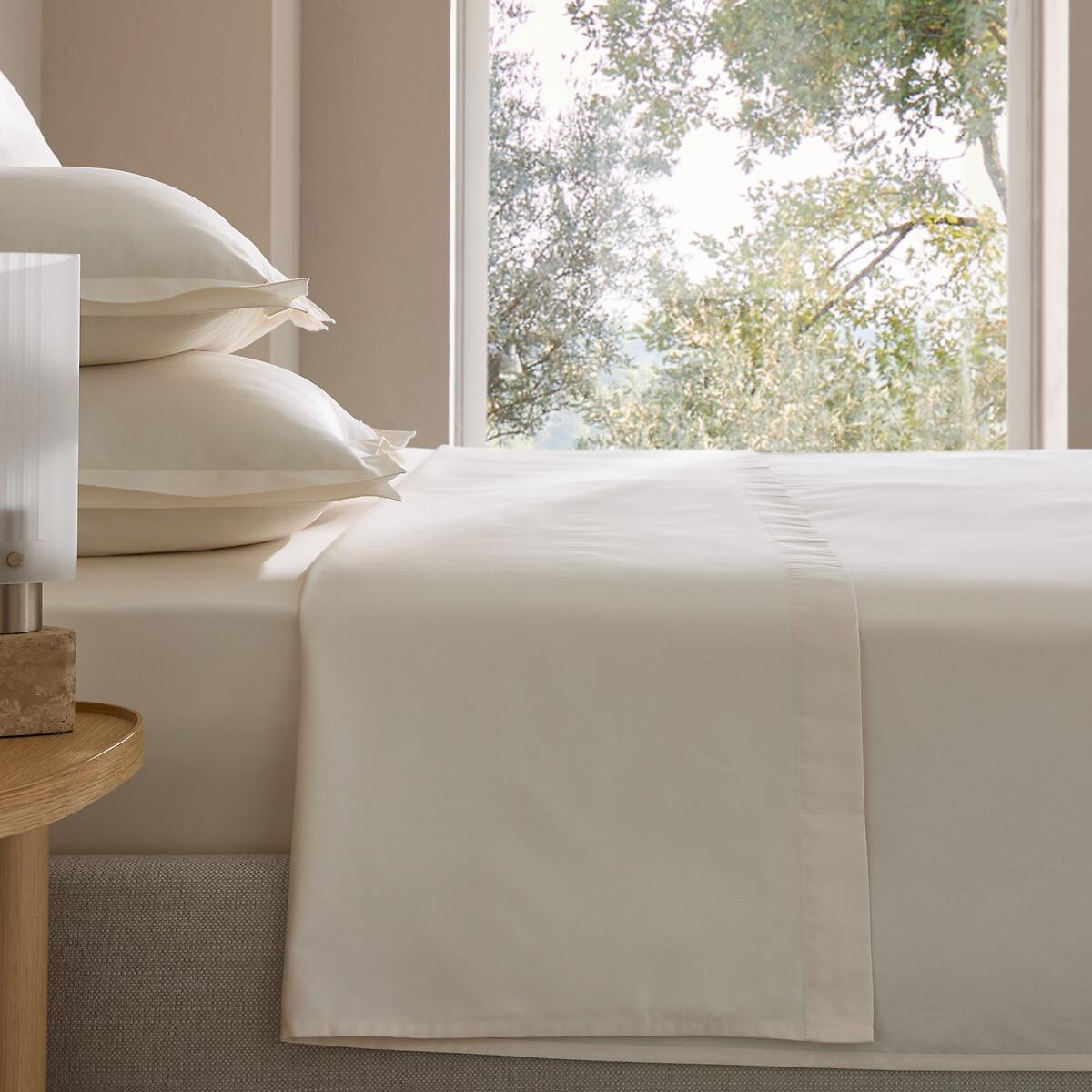 Galor cotton sateen combines timeless elegance with comfort. Made in Portugal, it has an understated, discreet shine. The very dense weave retains all its strength over time. An enveloping sensation of softness for perfect comfort. Product Details • 100% cotton • Organic cotton • Classic cotton sateen • 400 Thread Count: a common indicator for measuring the quality of fabric is the number of threads per cm². Different sensations are made possible thanks to the weaving and the number of threads present. Indeed, an optimal number of threads makes the bed linen particularly soft. Care Advice Follow our care tips to maintain the quality of your laundry • Machine washable at 40°C • Tumble dry at low temperature • Iron at average temperature • Do not dry clean. Dimensions • 180 x 290cm: Single • 240 x 300cm: King • 270 x 310cm: King • Made in Europe. • Cotton from organic farming. Organic farming does not use any chemicals, pesticides, insecticides or GMOs. Produced with minimal impact on biodiversity. • OEKO-TEX® Standard 100. Standard 100 certification by OEKO-TEX® tests textile products for harmful substances via an independent, international label.