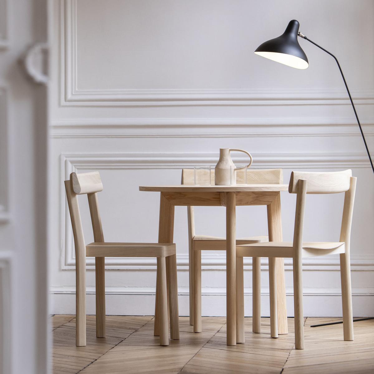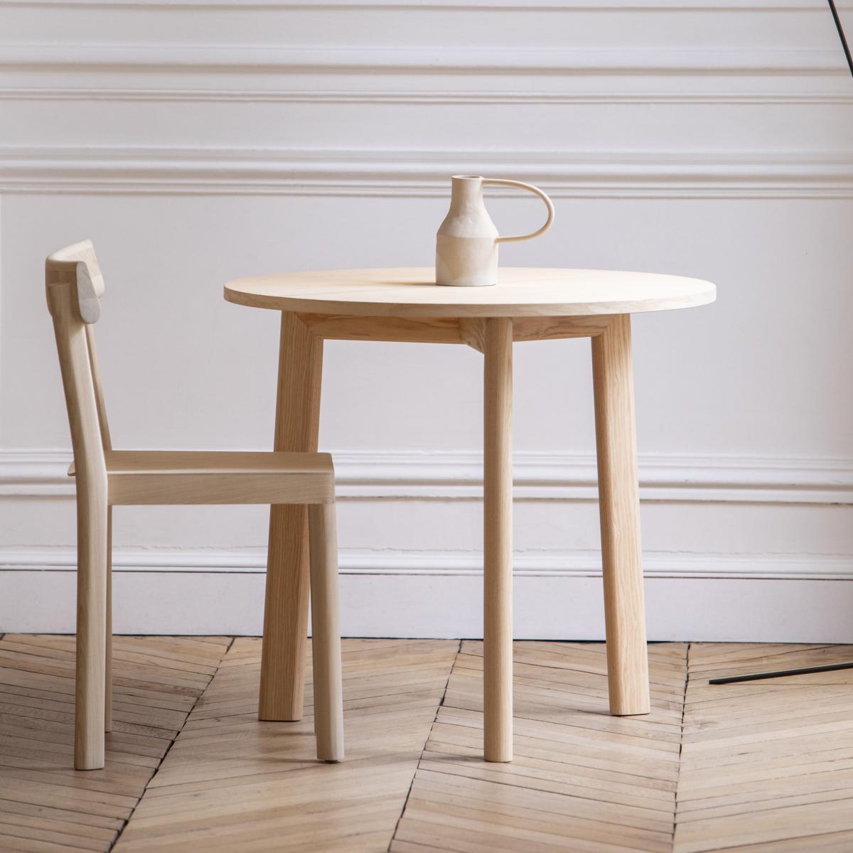 I love this simple yet stylish tripoded table for its natural wood finish and versatile size, making it ideal for both compact and open-plan dining spaces. Its minimal form works well in Scandi-inspired interiors, as well as modern and rustic settings. For styling, consider pairing it with neutral-toned chairs or a mix of vintage and contemporary pieces to add character. Practical tips include layering with a runner and a few decorative centrepieces to enhance its natural appeal without overpowering its clean lines. Its Ø 80cm size makes it perfect for cosy dinners or as a versatile surface in a breakfast nook or kitchen corner.