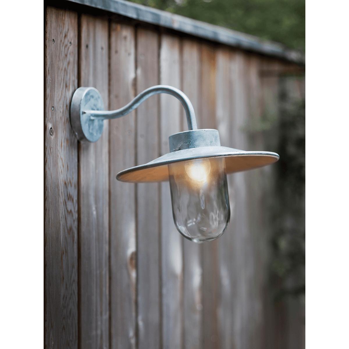 Inspired by naval design, this elegant light looks perfect mounted on an outdoor wall or fence. The hot-dip galvanised finish lends both durability and a wonderful texture, and the graceful curved neck and glass bulb covering add vintage inspired beauty to your outdoor space.